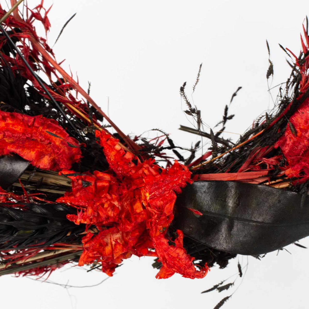 Couronne de fleurs séchées GALENO sur anneau, rouge-noir, 36,5cm, Ø30cm