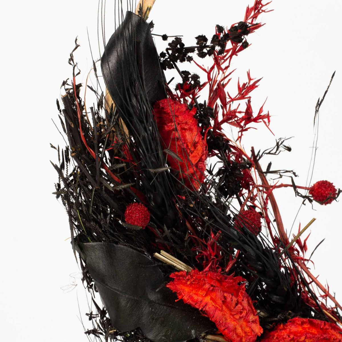 - Arrangement composé de différentes fleurs séchées de couleur rouge-noir