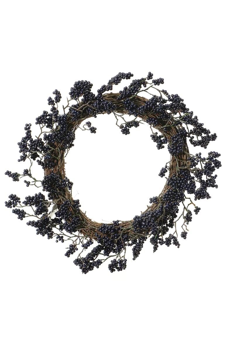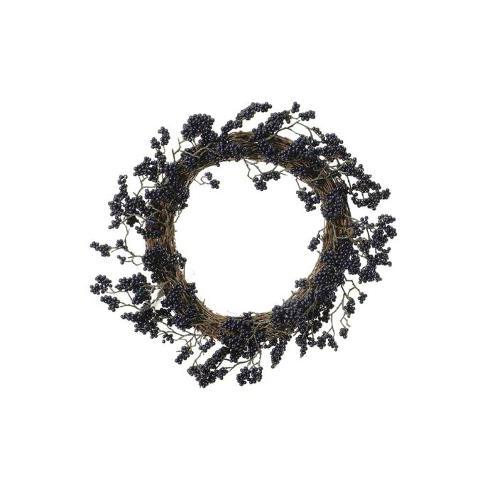 - Les nombreuses baies bleu foncé sont fixées sur une couronne en rotin