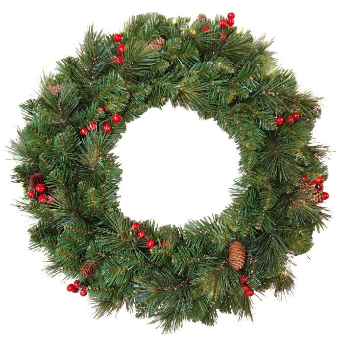 - Ornée de groseilles, de pommes de pin et de 160 branches de conifères en matière PVC de grande qualité