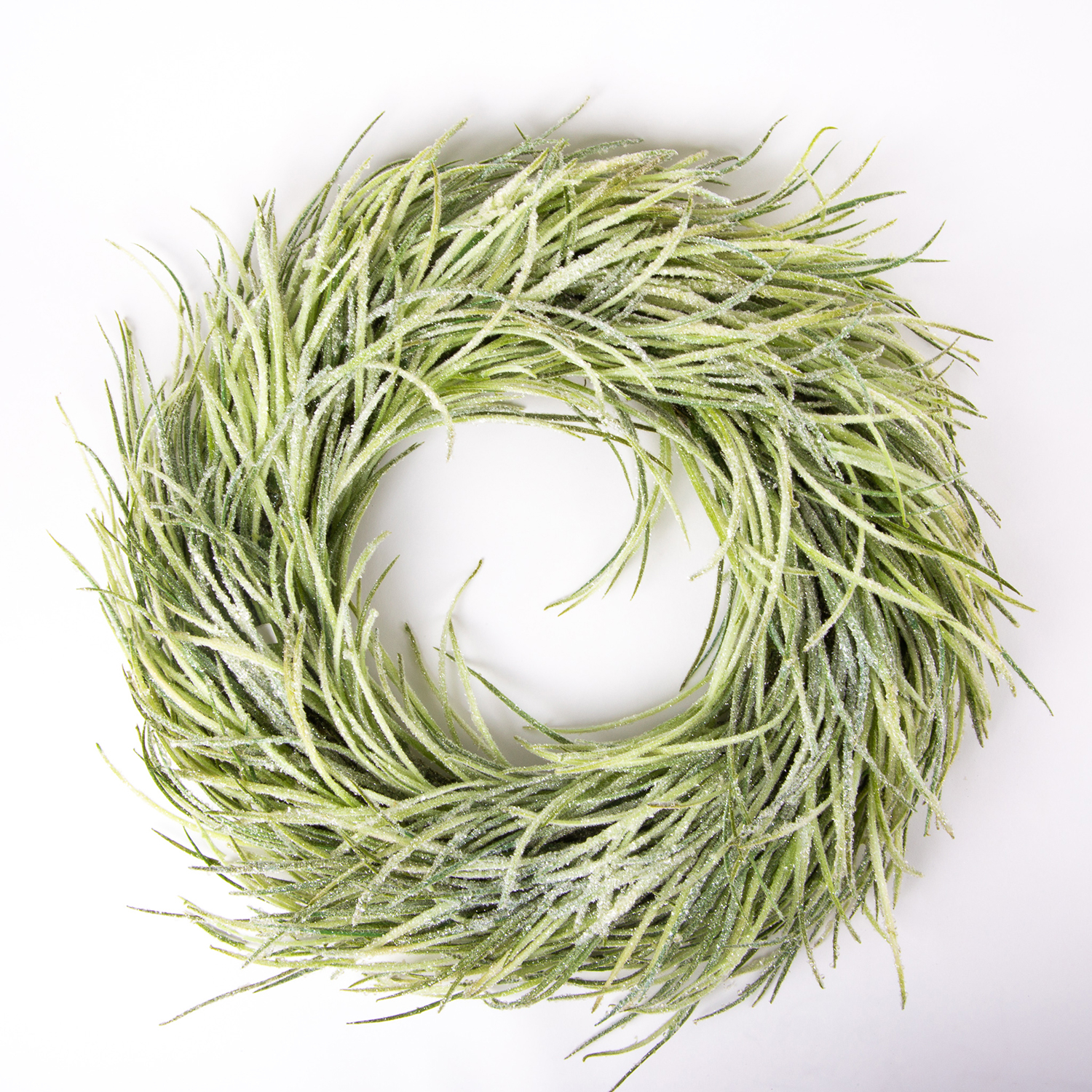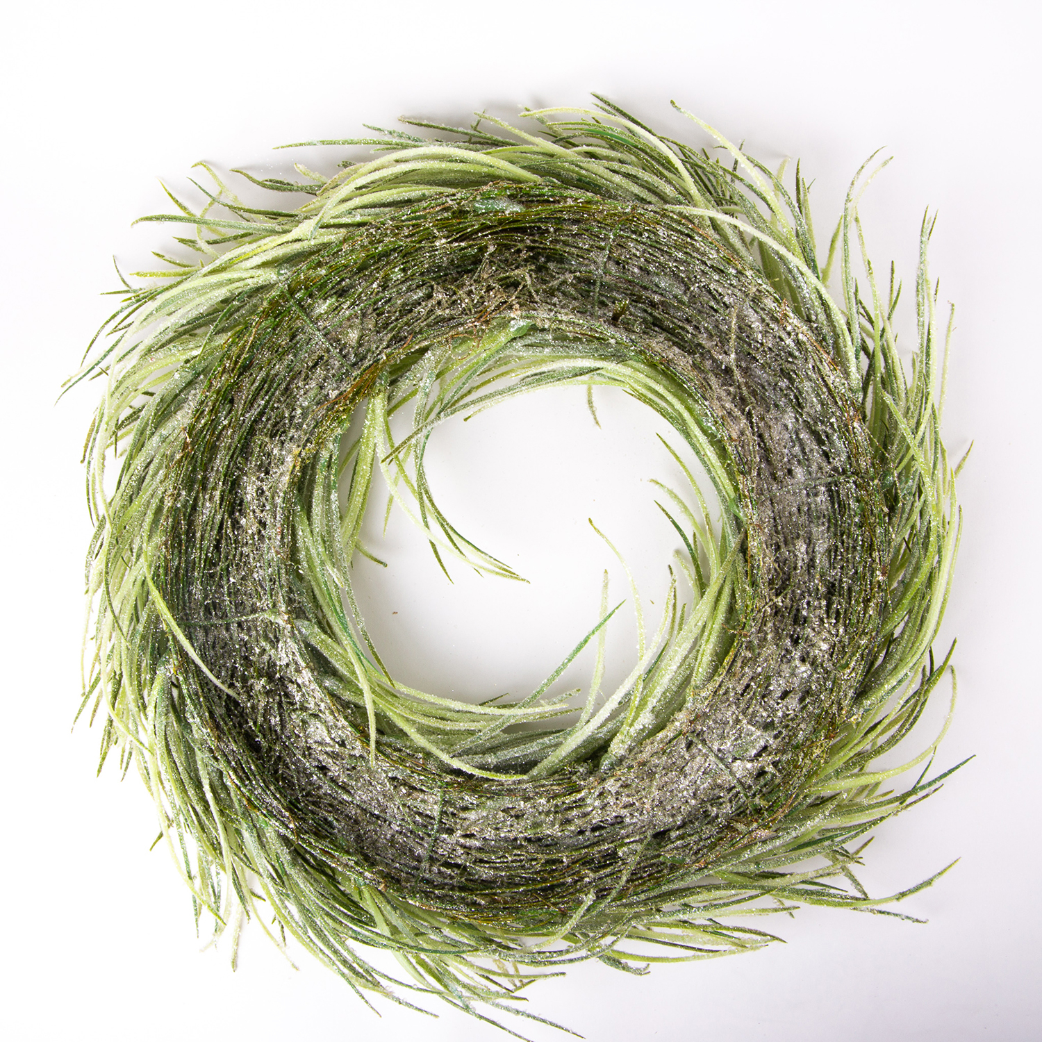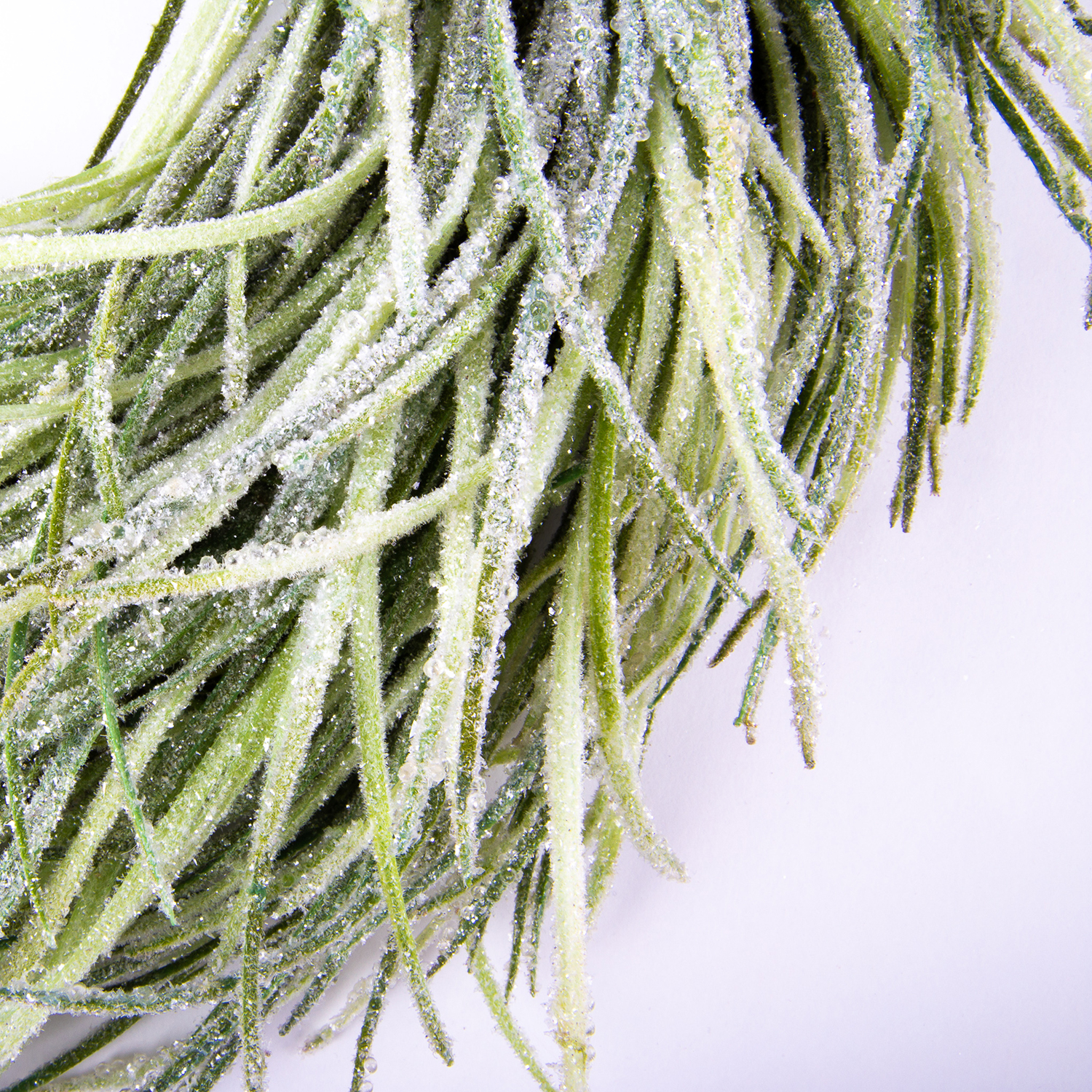 Couronne de Noël avec de longues aiguilles d’aspect givré. Cette couronne synthétique mesure environ 80 cm de diamètre et ornera parfaitement votre porte d’entrée ou votre table.