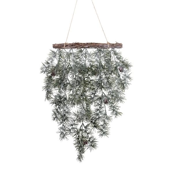 Couronne de plafond artificielle de cèdre DINSA avec des pommes de pin, givré, vert-blanc, 55cm