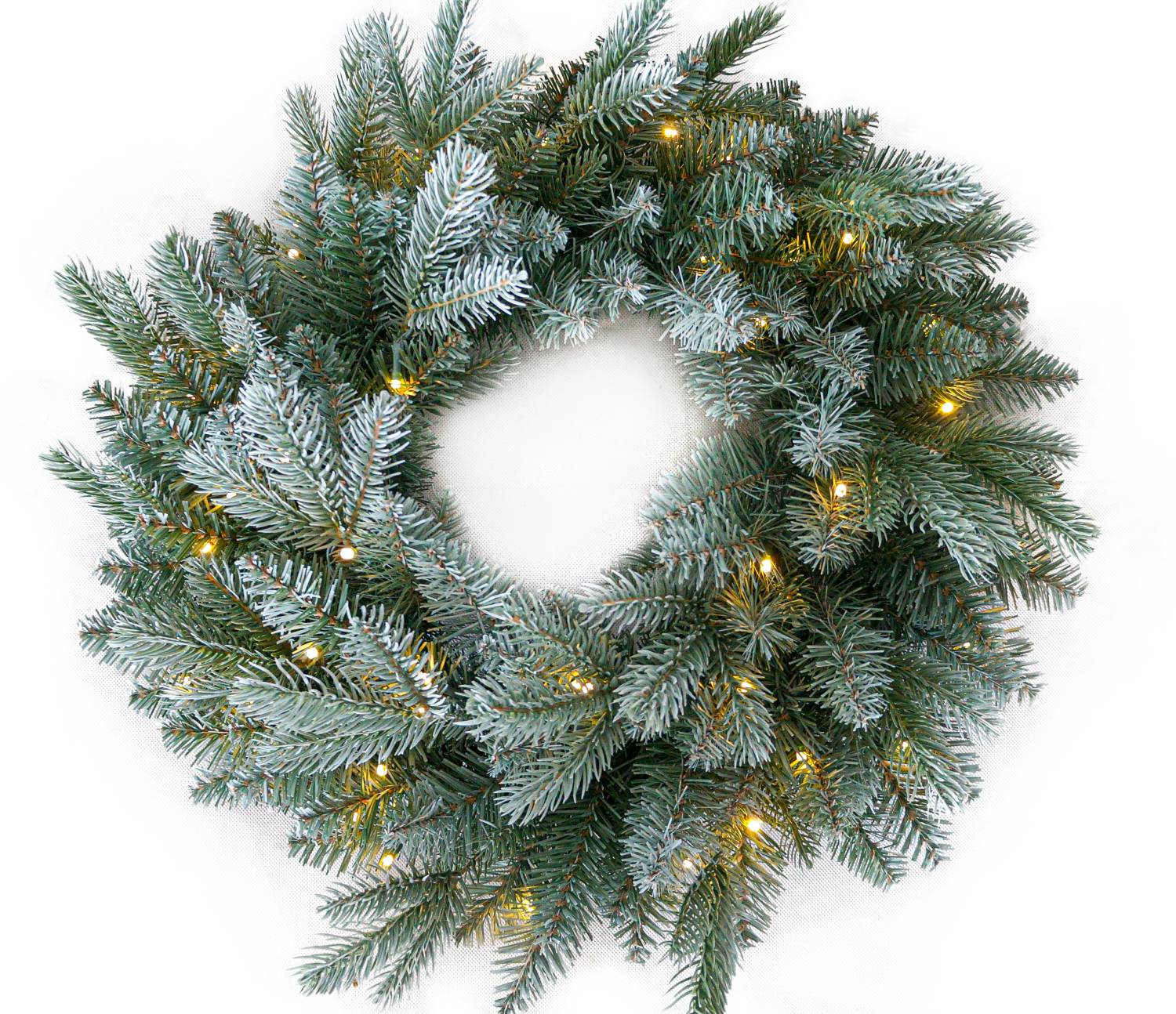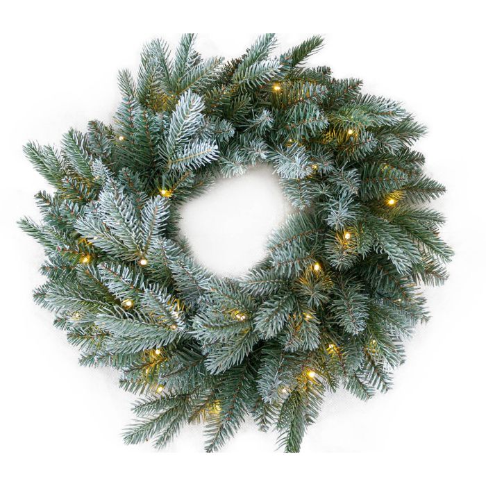 - Couronne artificielle givrée avec de nombreuses LEDs pour votre décoration personnalisée