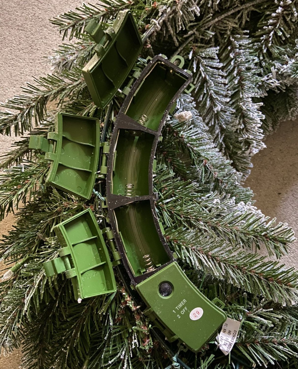 - Couronne artificielle enneigée avec de nombreuses LEDs pour votre décoration personnalisée