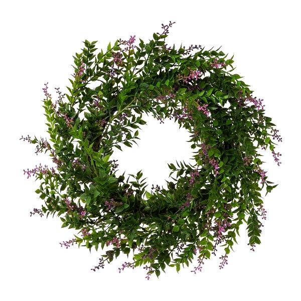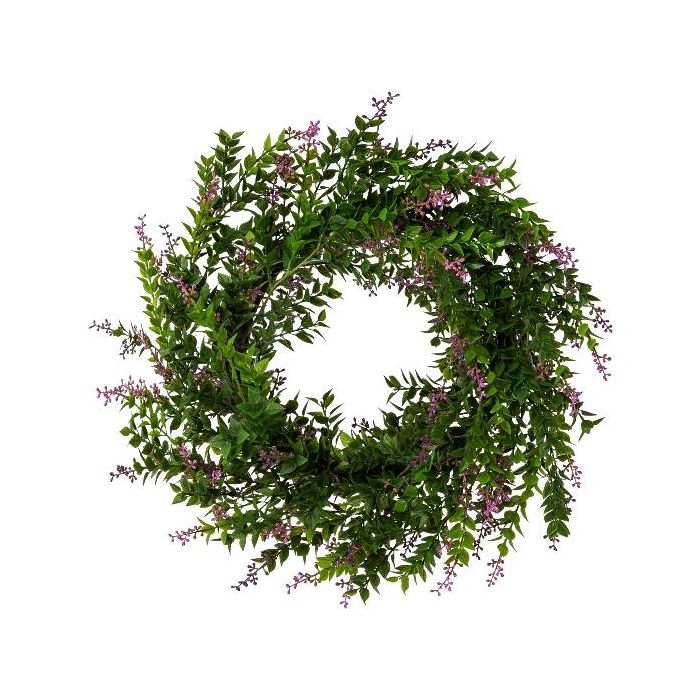 Couronne décorative de fragon petit-houx BILRO avec des fleurs, vert-lilas, Ø60cm