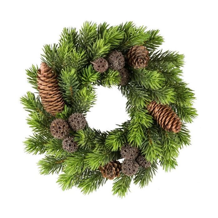 Couronne décorative de sapin BAVRO avec des pommes de pin, vert, Ø25cm