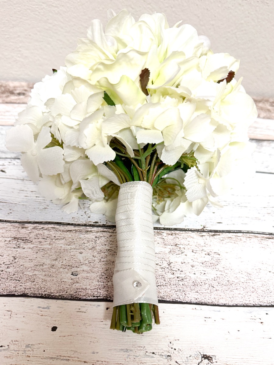 Création de bouquet de mariée avec boutonniére pour le marié - demande de la cliente Ursula