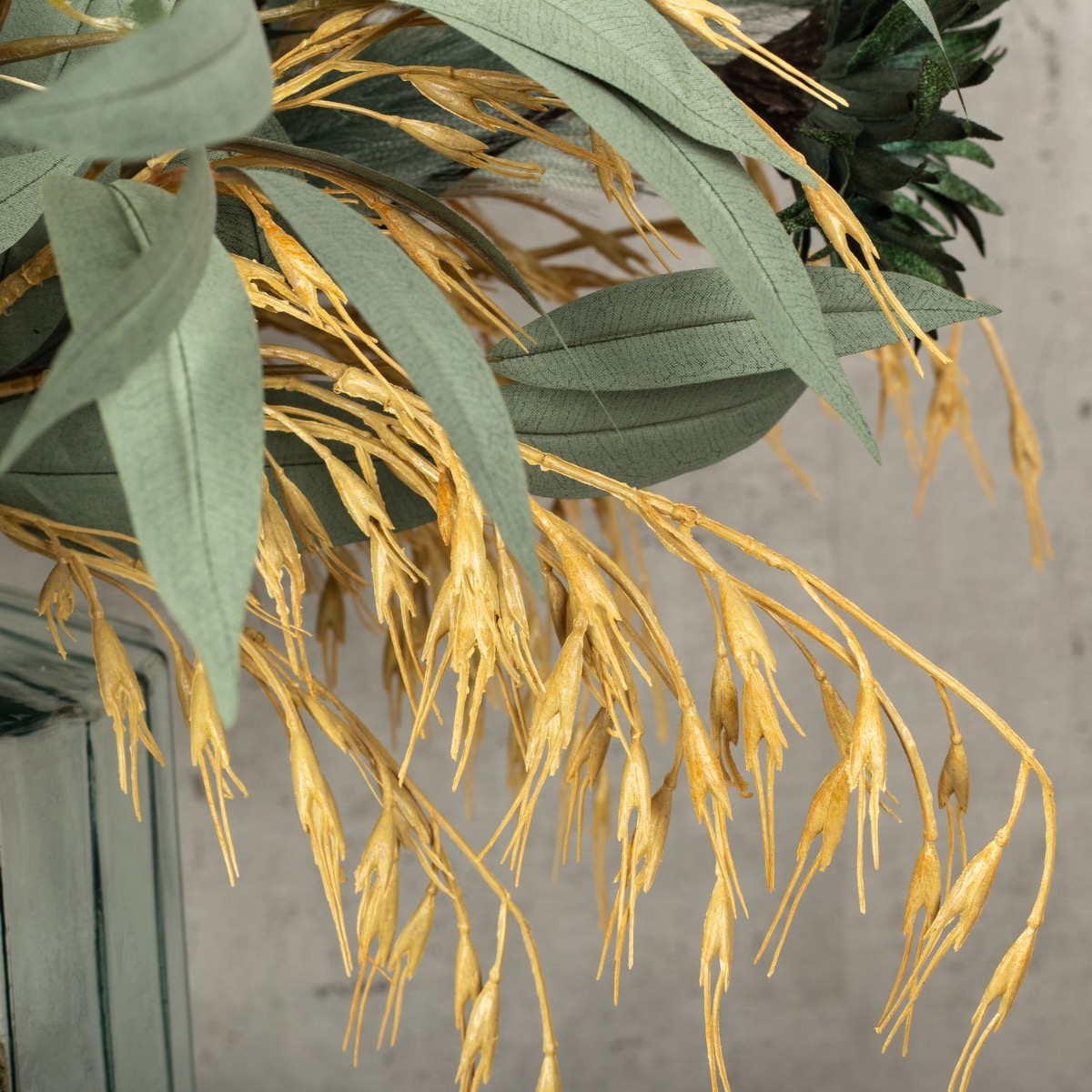 Conseil d'aménagement : Si vous n'avez pas beaucoup d'expérience dans la confection de bouquets, vous pouvez procéder de manière très simple pour créer ce bouquet. On pose le vase devant soi et on met chaque branche séparément dans le vase. Pour cela, on procède de l'extérieur vers l'intérieur. À l'extérieur, les branches doivent être plus courtes qu'au milieu et pendre un peu vers le bas, si nécessaire, plier un peu les branches au préalable. Quelques branches doivent encore être coupées à la hauteur du vase. On obtient ainsi la forme ronde et classique d'un bouquet de fleurs.