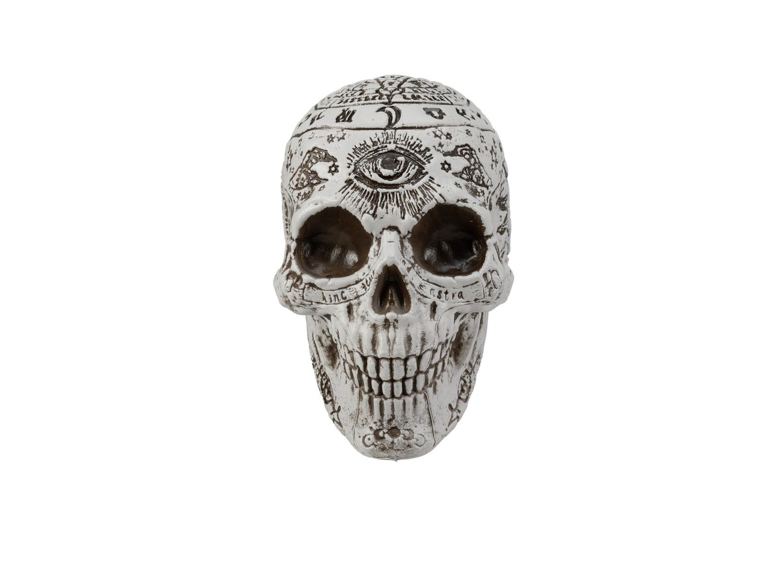 Décoration d'Halloween Tête de mort FARALDA avec des signes et symboles mystiques, blanc-noir, 12x10x18cm