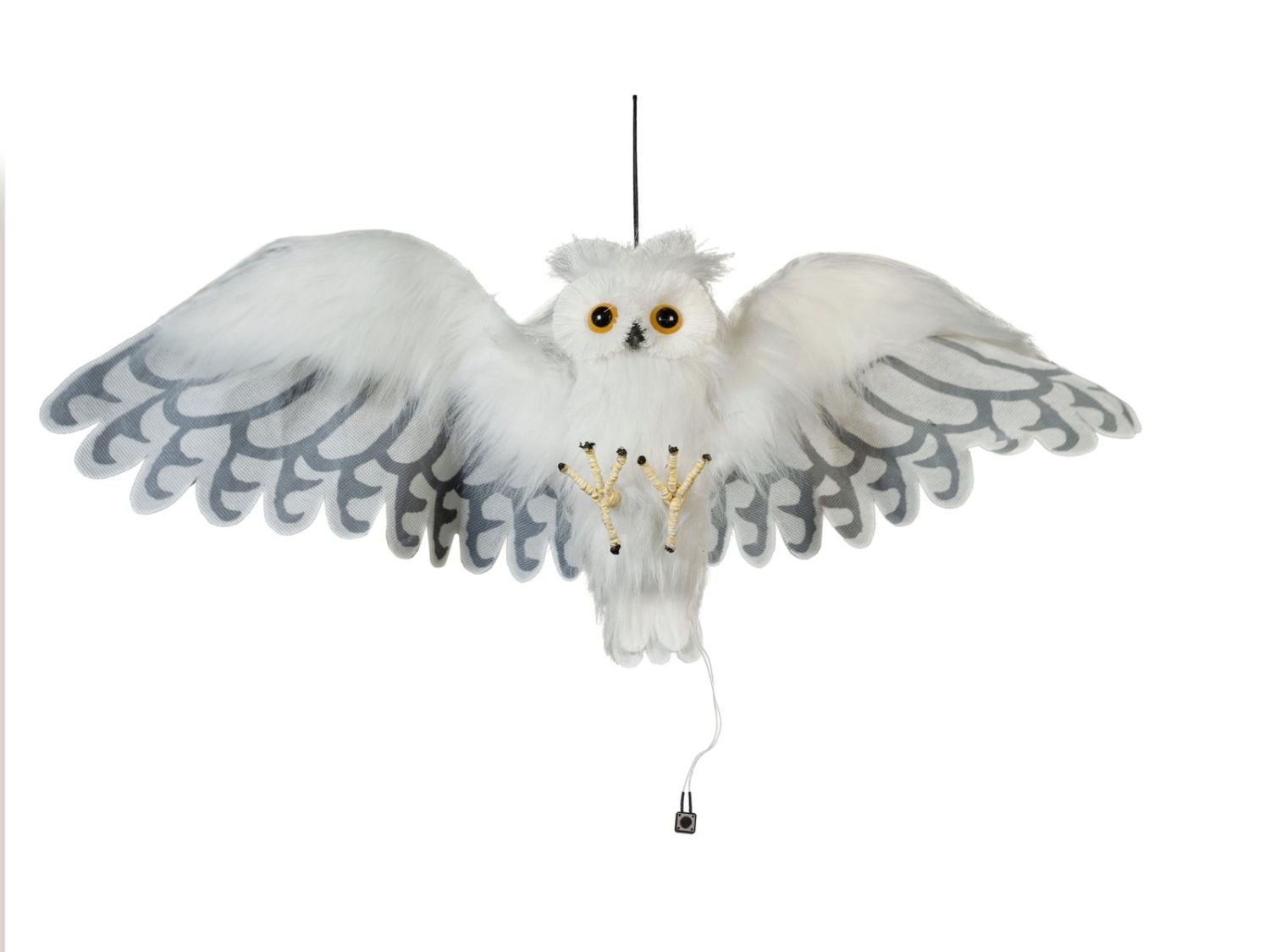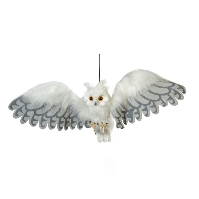 Décoration Halloween Figurine harfang des neiges JUNITA, fonction sonore et mouvement, LEDs, 30x75x10cm