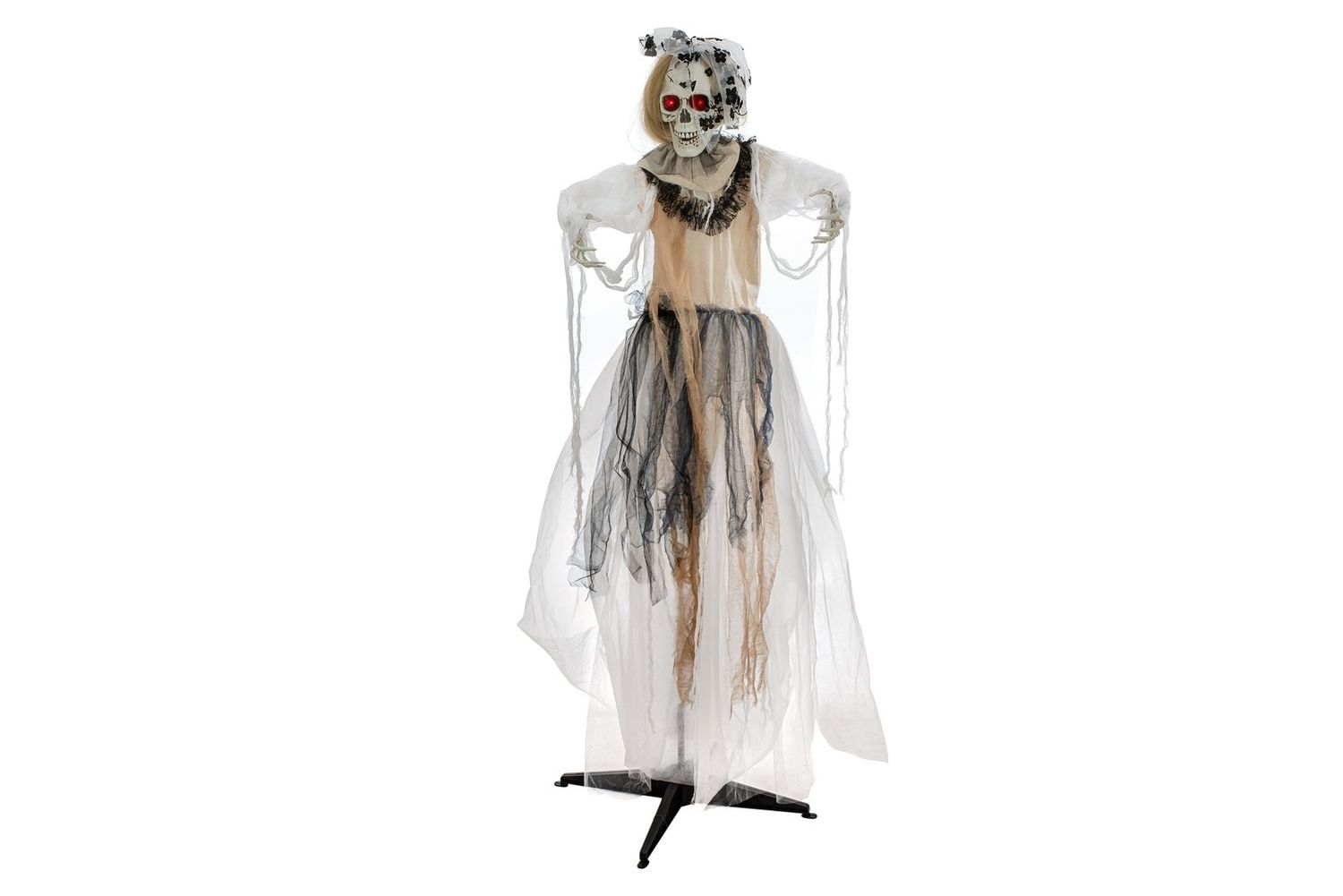 Décoration Halloween Squelette mariée SCHAKLYN, fonction sonore et mouvement, LEDs, 80x50x170cm