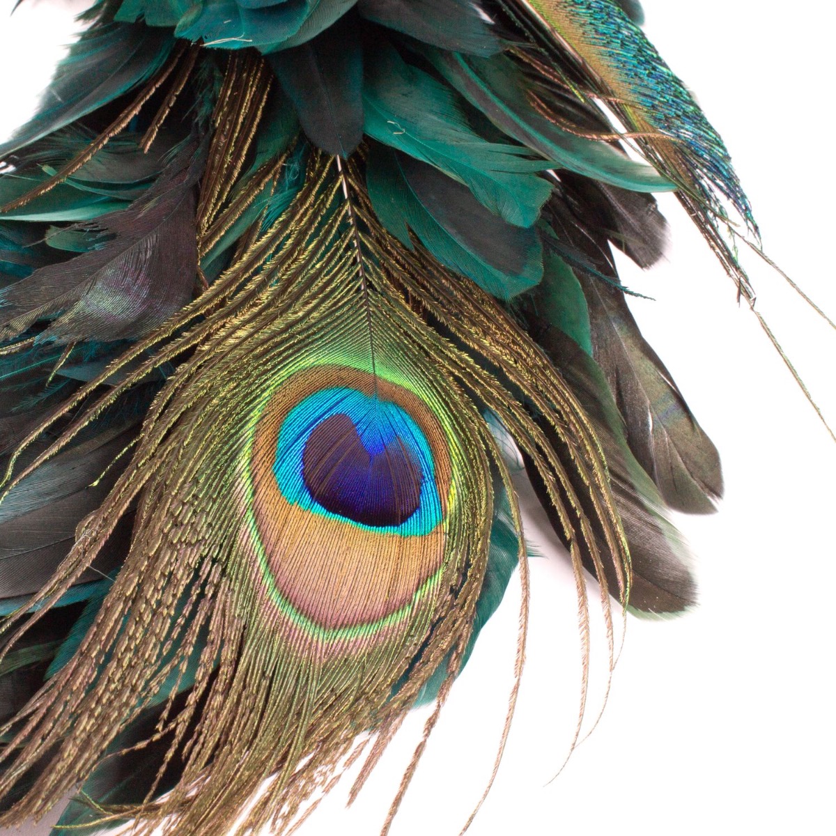 La couronne de plumes de paon NORDIAN conviendra parfaitement à la décoration d'une vitrine ou d'une exposition de meubles, par exemple. Son aspect extravagant en fera un objet déco efficace, fixé par exemple au mur ou à la porte.