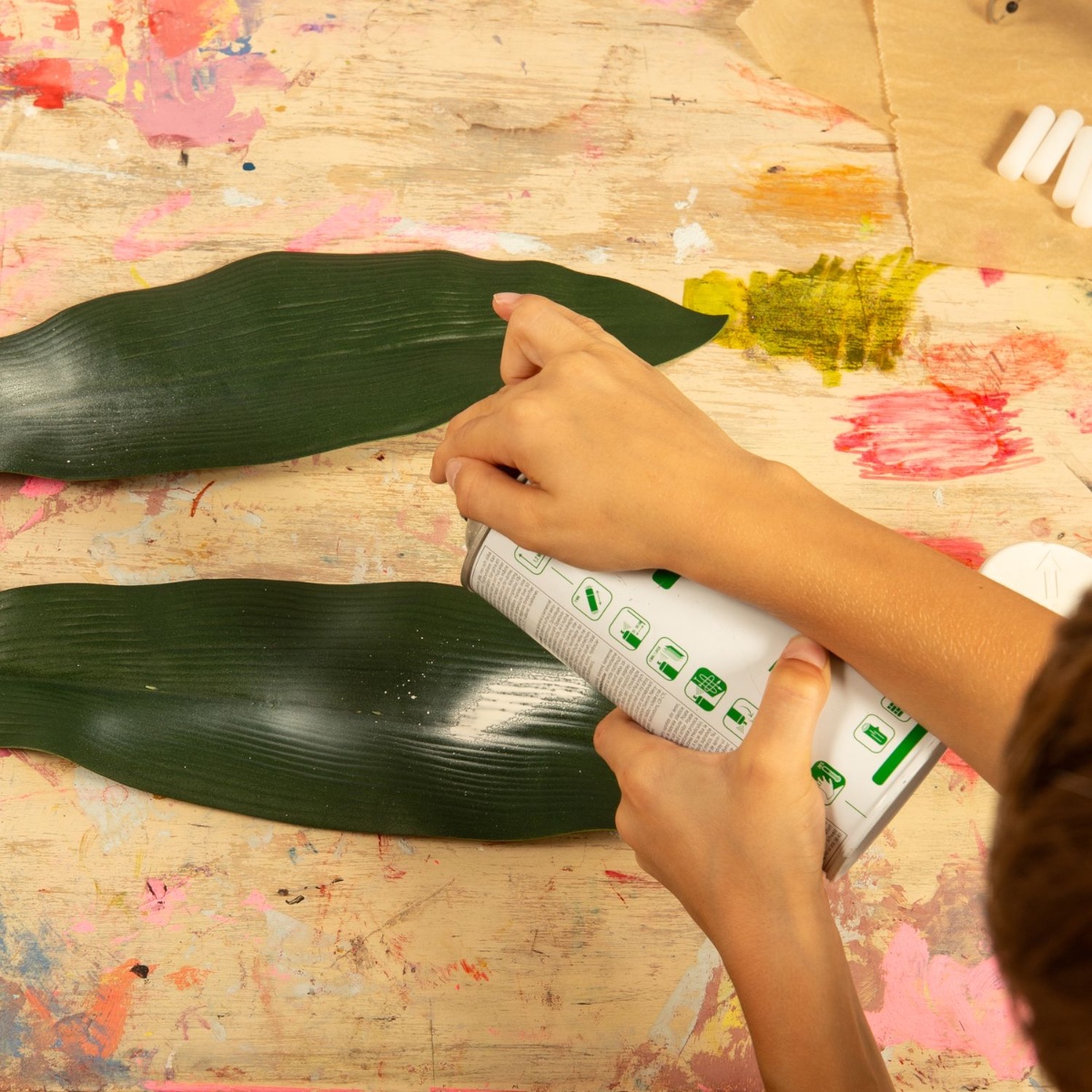 1. Séparez les grandes feuilles de la tige, peignez-les de la couleur souhaitée et laissez-les sécher.