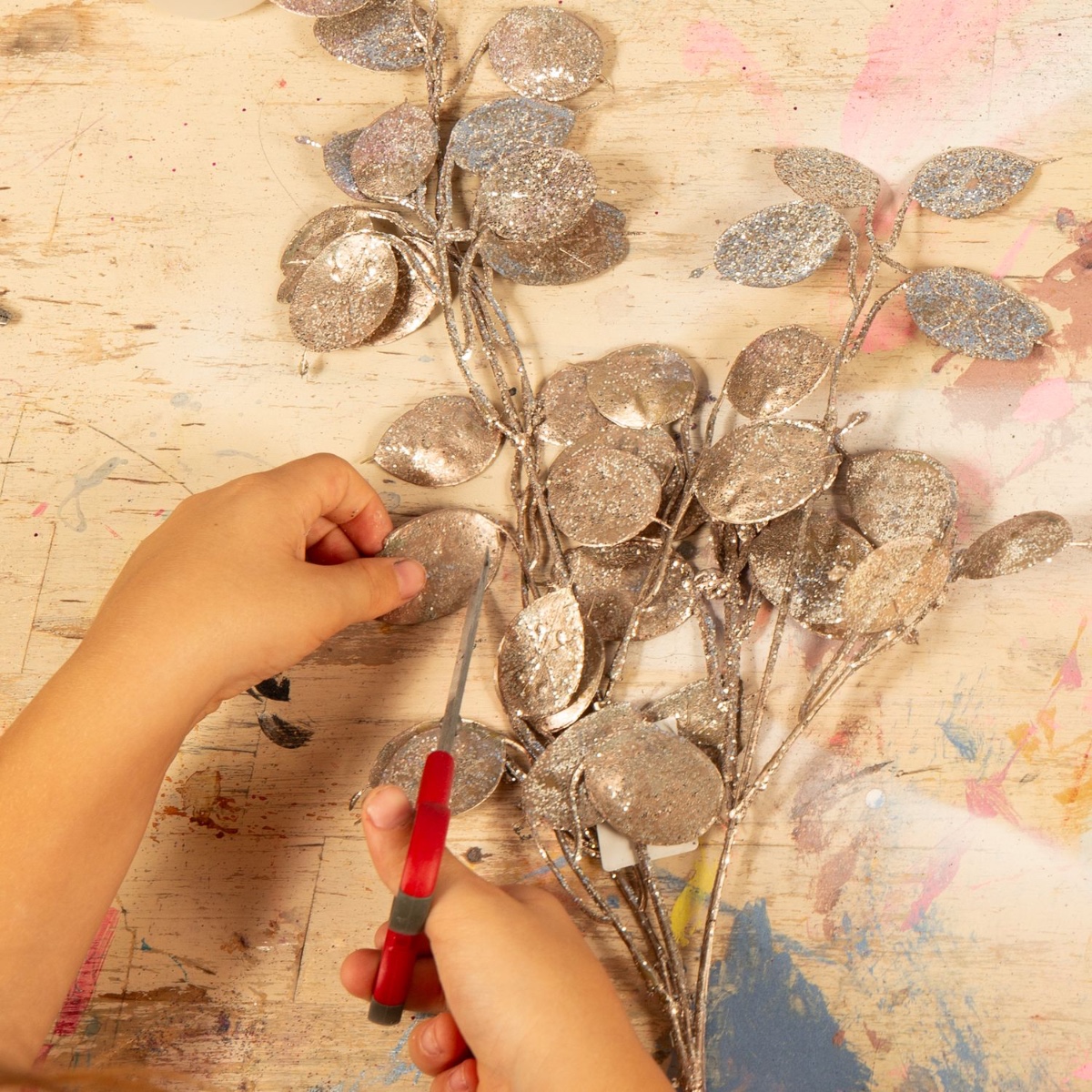 4. Détachez les petites feuilles argentées des branches et arrondissez-les légèrement avec des ciseaux si nécessaire. Elles serviront à représenter les écailles du poisson.