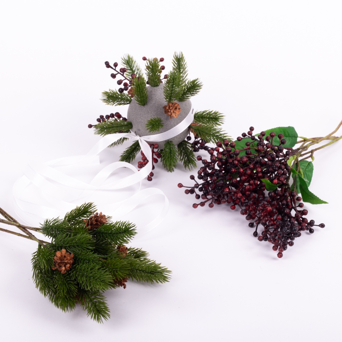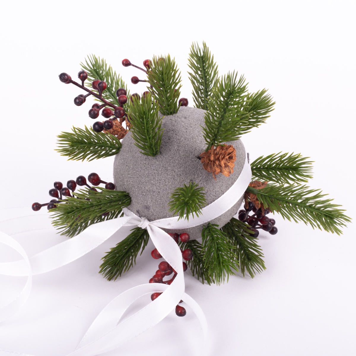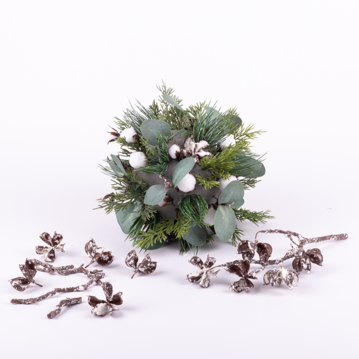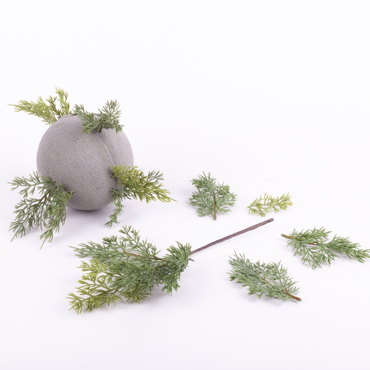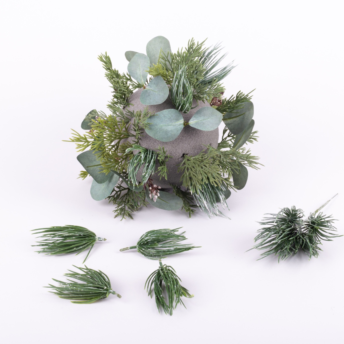 2. À l'aide d'une pince, séparez les petites ramifications des branches individuelles de la grande tige. Ensuite, il suffit d'enfoncer les petites branches dans la boule. Veillez à les répartir uniformément.