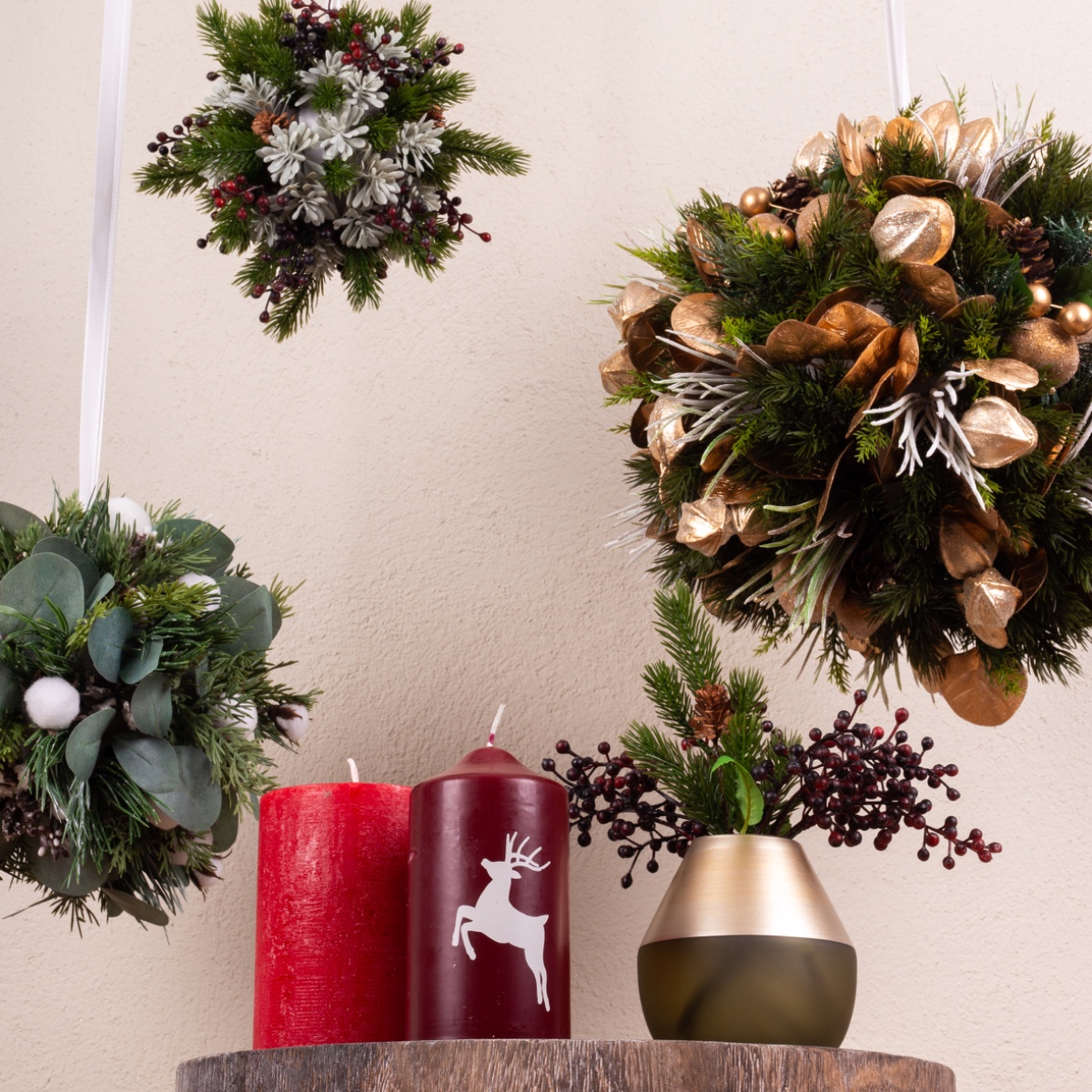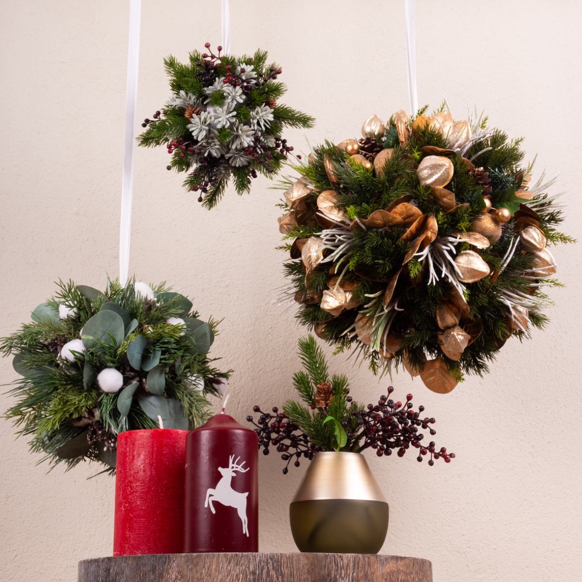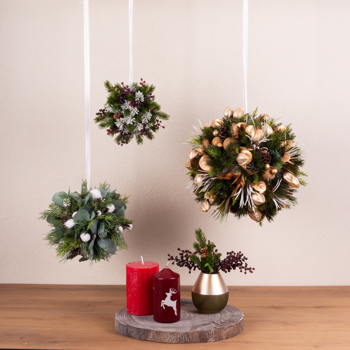 Vert et festif ! Un look festif qui vient d'en haut. Nos boules en pâte à modeler sont idéales pour cela. Nous avons conçu 3 boules différentes en trois tailles différentes. Chaque boule est une petite œuvre d'art sur laquelle on peut reconnaître de nombreux détails différents. Votre créativité n'a ici aucune limite, car vous pouvez décorer les boules comme vous le souhaitez. Les petites branches sont simplement enfoncées dans la mousse florale. Cela donne vraiment envie de bricoler. Shop the Look !