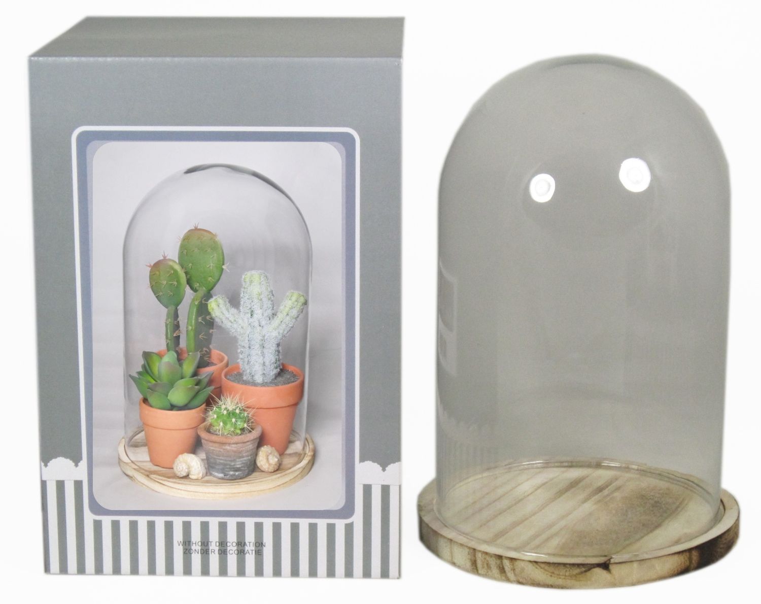 Dôme en verre SABIKA avec socle en bois marbré, transparent, 30cm, Ø22cm
