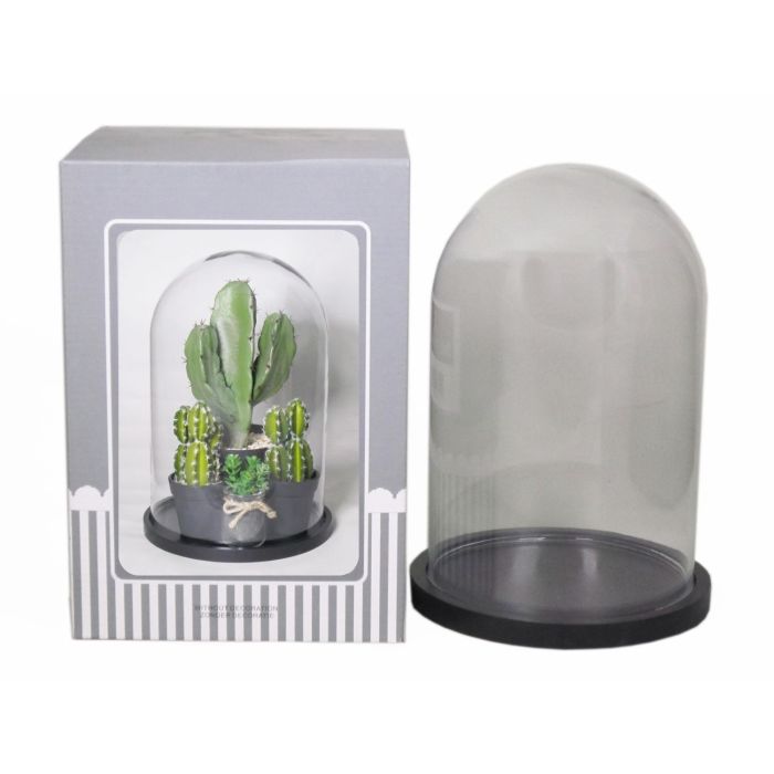 Dôme en verre SABIKA avec socle en bois noir, transparent, 22cm, Ø14cm