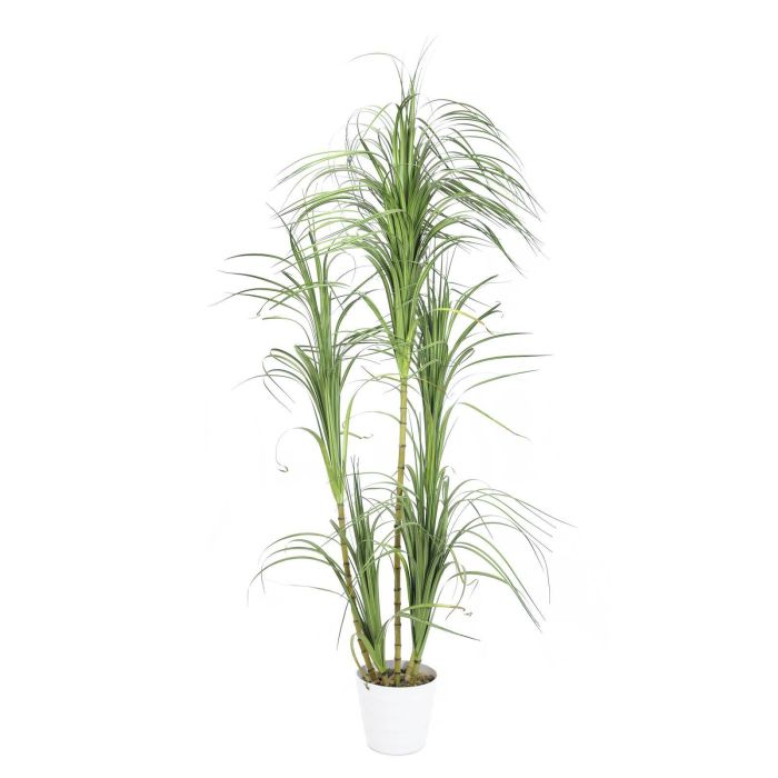 Joli dragonnier artificiel (Dracaena) pourvu de beaucoup de nombreuses feuilles vertes. Cette plante artificielle en pot mesure au total environ 210 cm de haut.