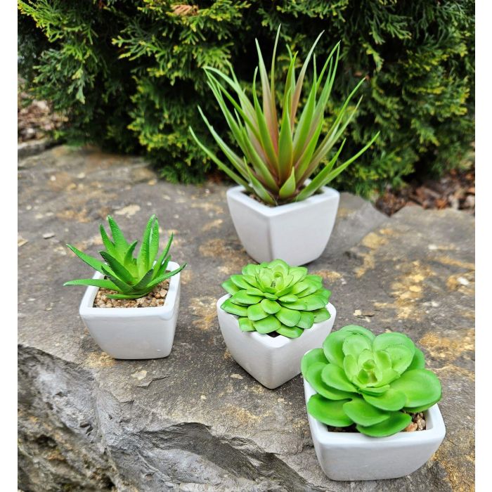Echeveria elegans artificiel KATNISS, pot en céramique, vert, 6cm
