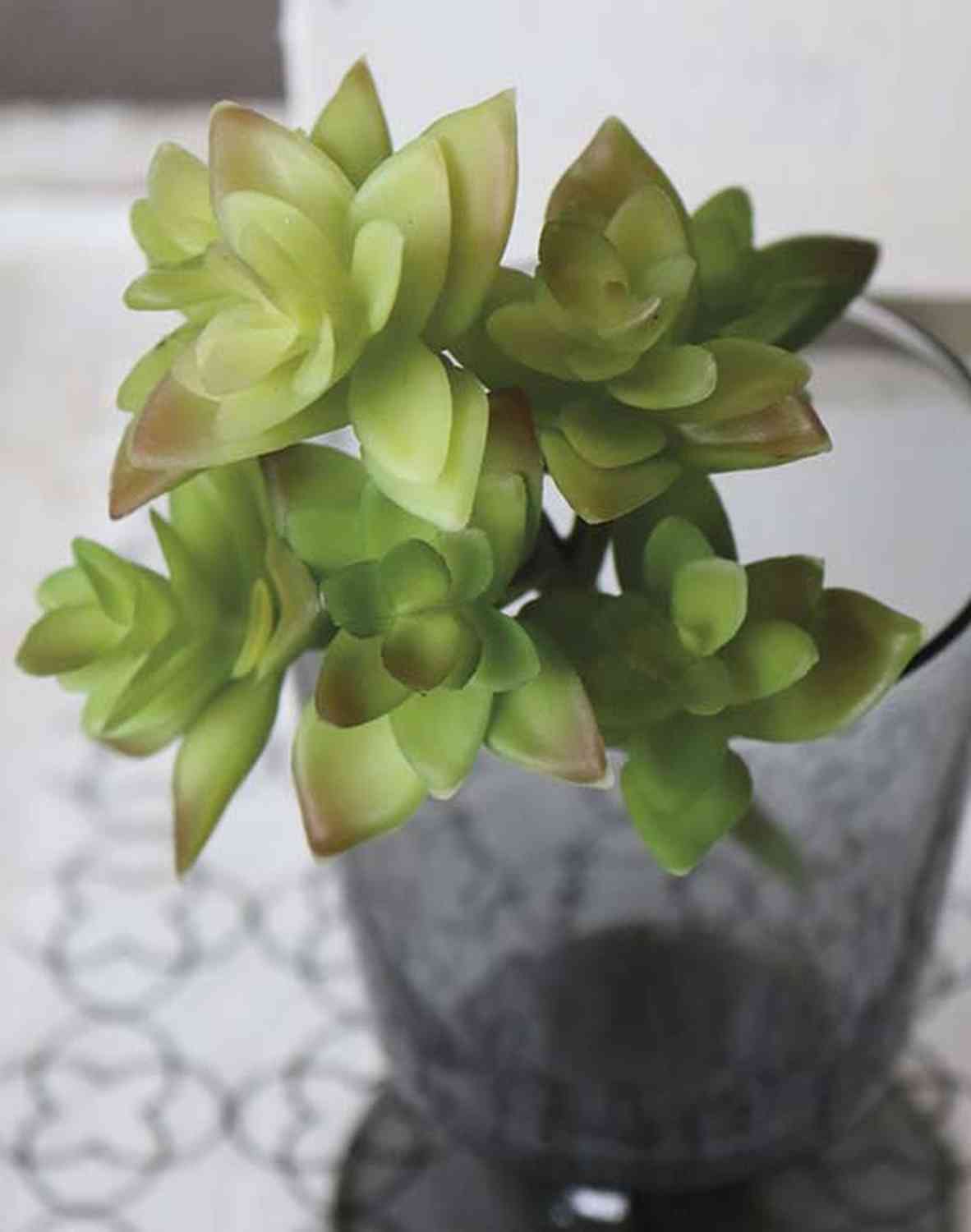 L'echeveria artificiel TROY de couleur vert-rouge a une hauteur totale de 17 cm. Pour une fixation facile, la plante artificielle est pourvue d'un piquet, ce qui lui permet de décorer facilement chaque pièce dans votre cache-pot.