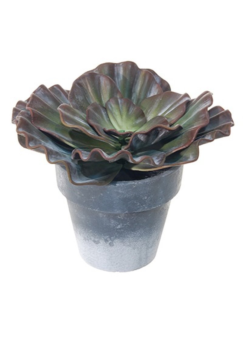 Echeveria rosea artificiel MARNIE, cache-pot, rouge bourgogne-vert, 15cm