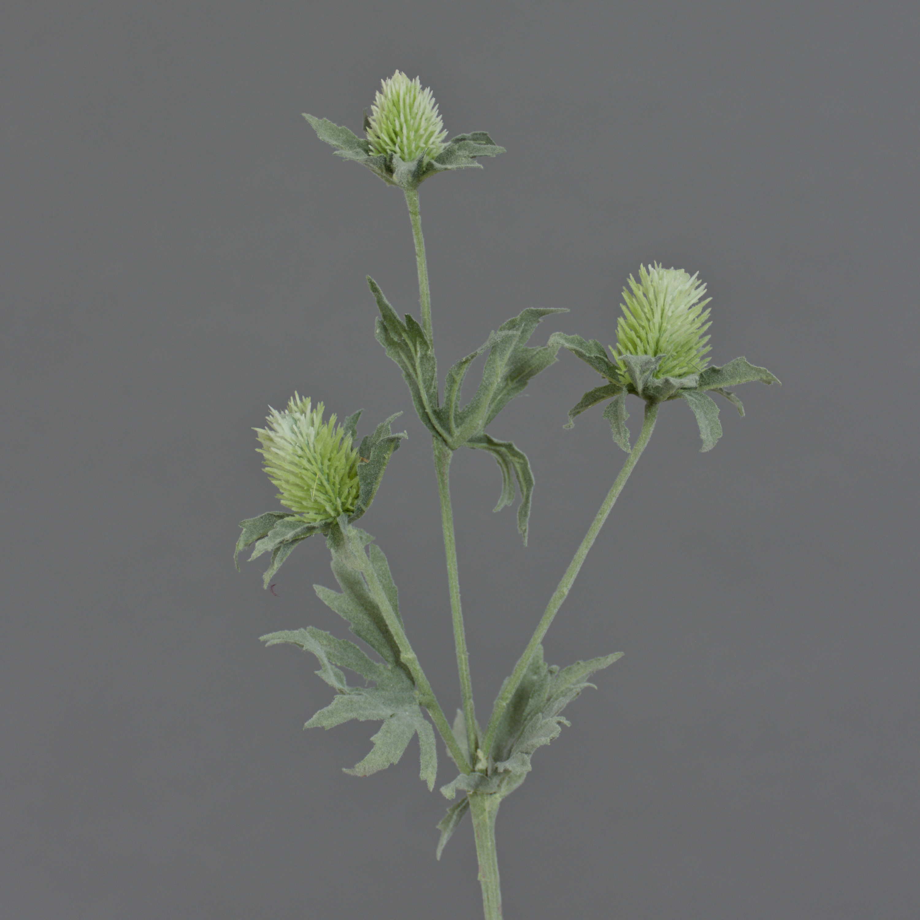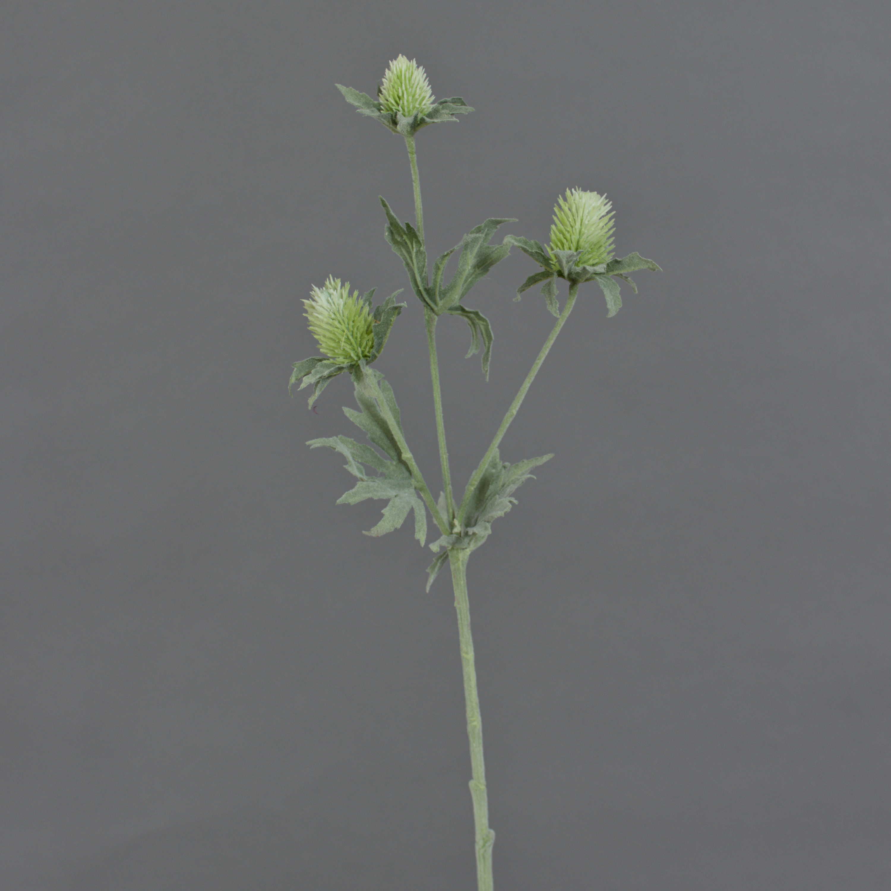 La branche artificielle SVEA est pourvue de 3 chardons de couleur verte et de quelques feuilles d'aspect naturel. Ce panicaut artificiel mesure au total environ 40 cm de long.