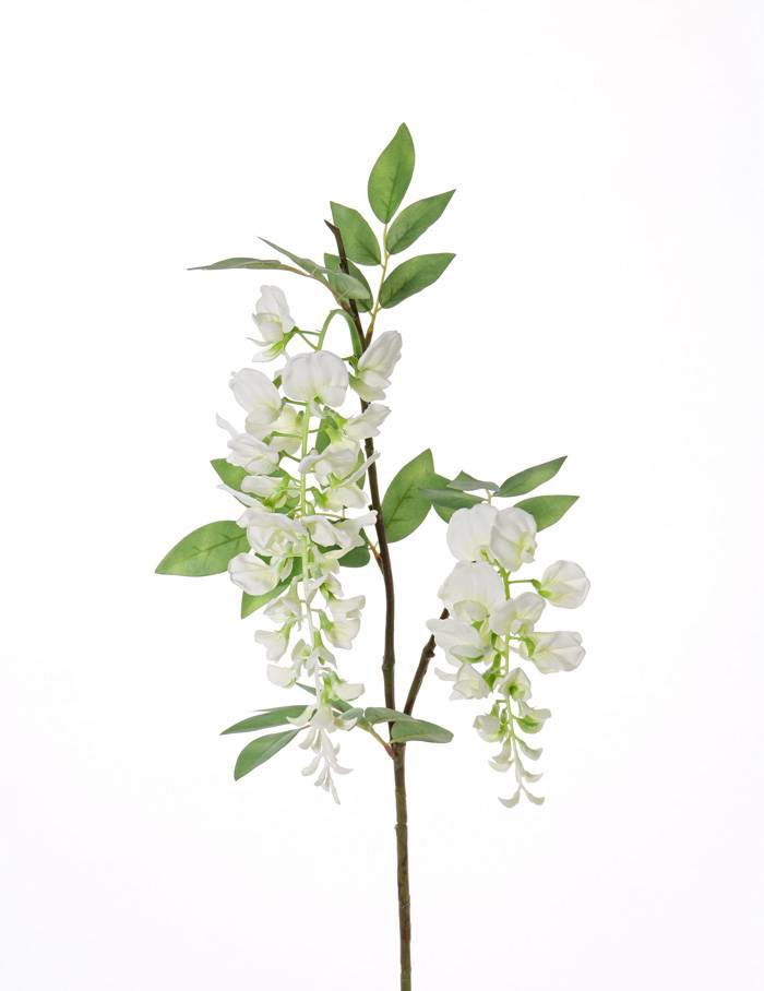 Fausse branche de glycine NEZUMI, avec fleurs, blanc, 105cm