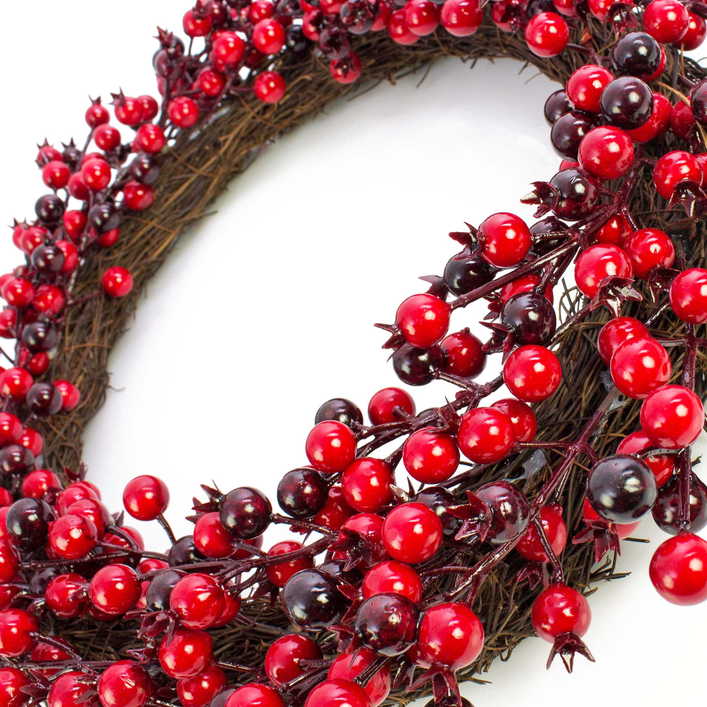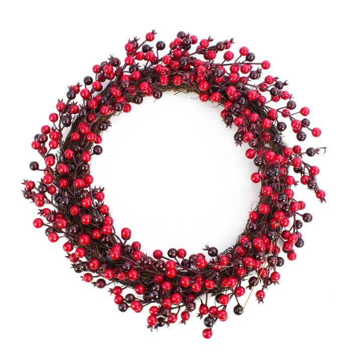 Fausse Couronne de pyracantha GASIRA, rouge-rouge vin, Ø45cm