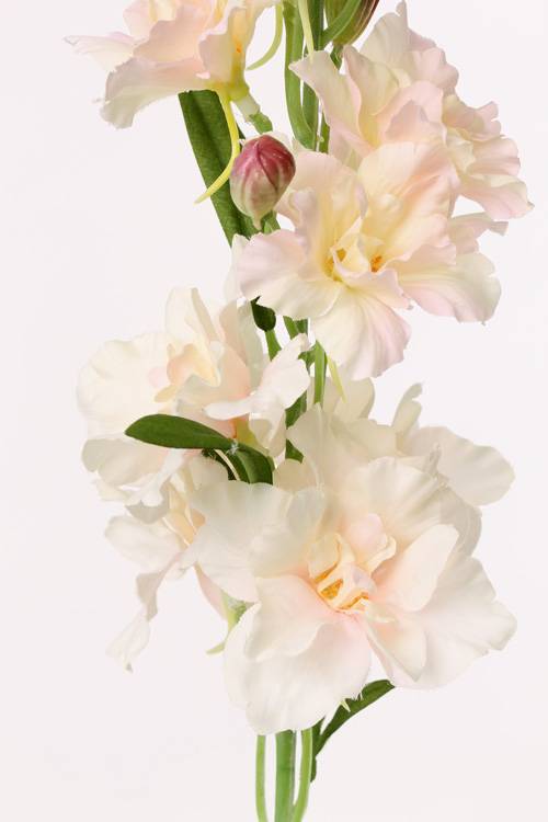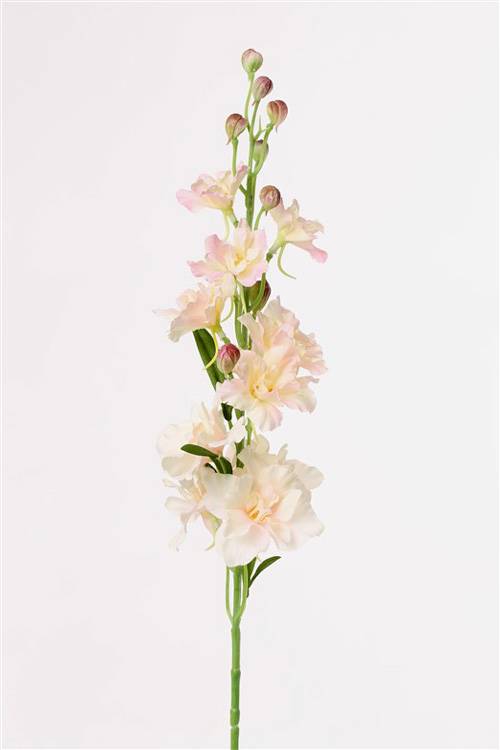 Le delphinium artificiel RASMINEde couleur rose-blanc a une longueur totale d'environ 60 cm et un diamètre des fleurs d'environ 5 - 7 cm.