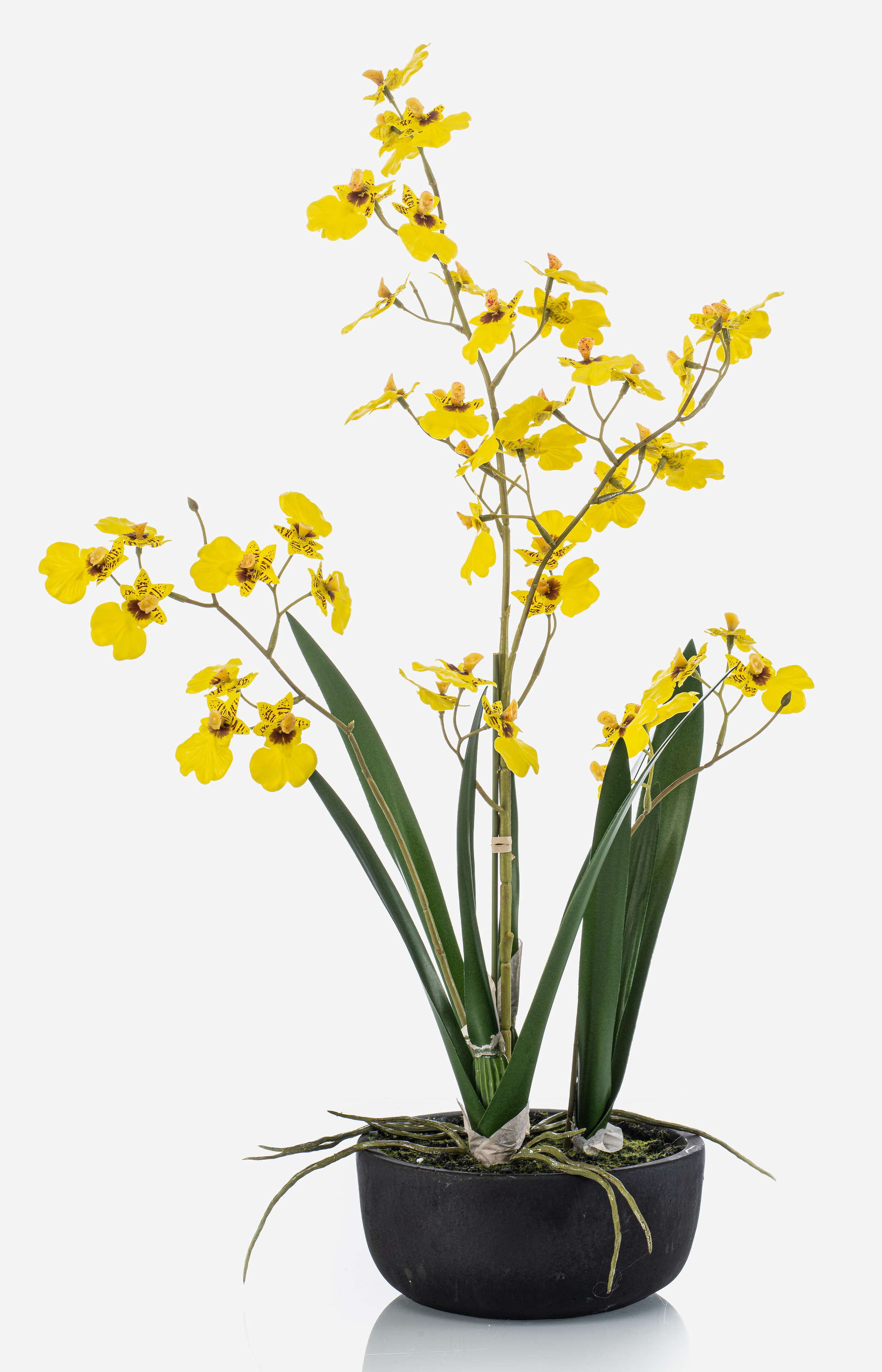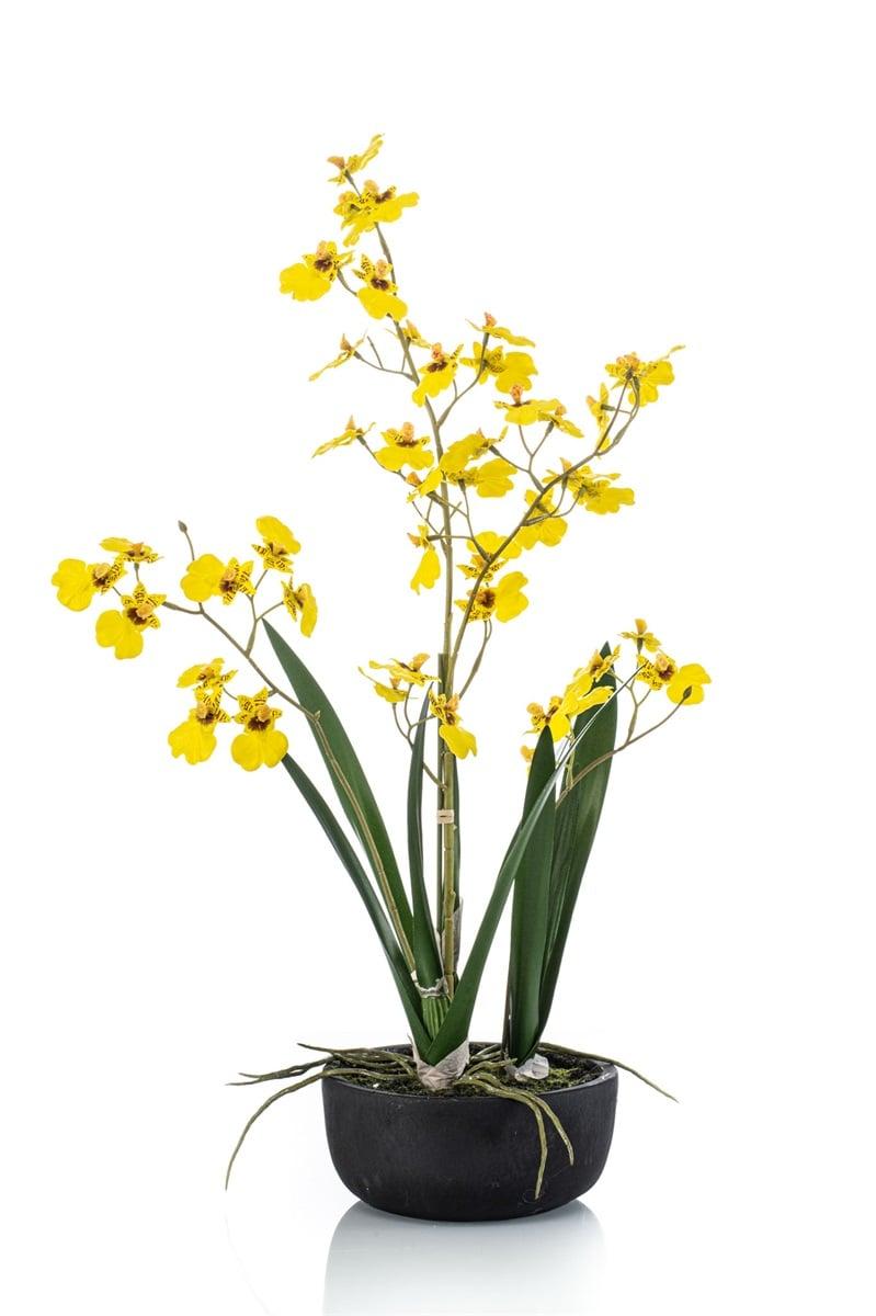 Fausse orchidée Oncidium DEISHA en coupe décorative, racines, jaune, 60cm