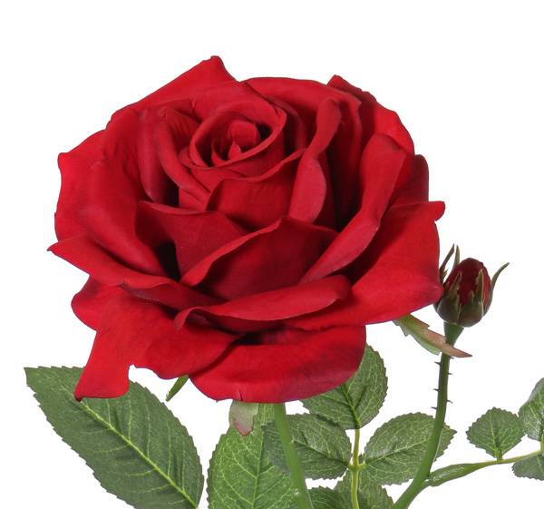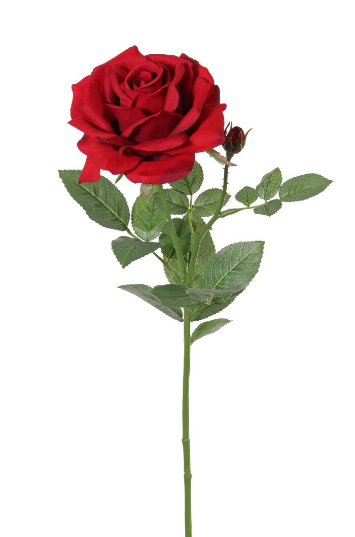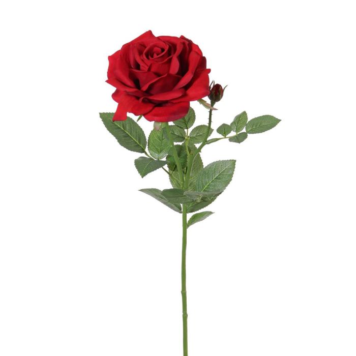 La rose artificielle JANINE est pourvue d'une fleur et d'un bouton de couleur rouge. Elle décorera aussi bien individuellement que dans une composition florale en combinaison avec un vase soliflore votre espace de vie. Elle a une longueur totale d'environ 70 cm.
