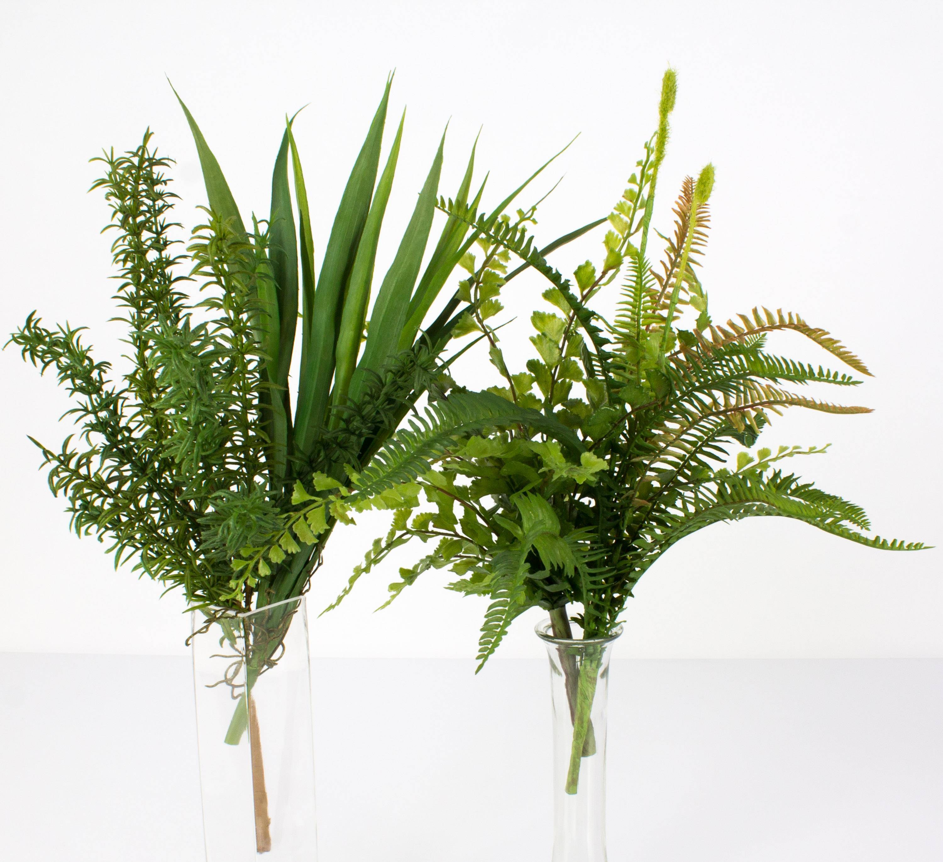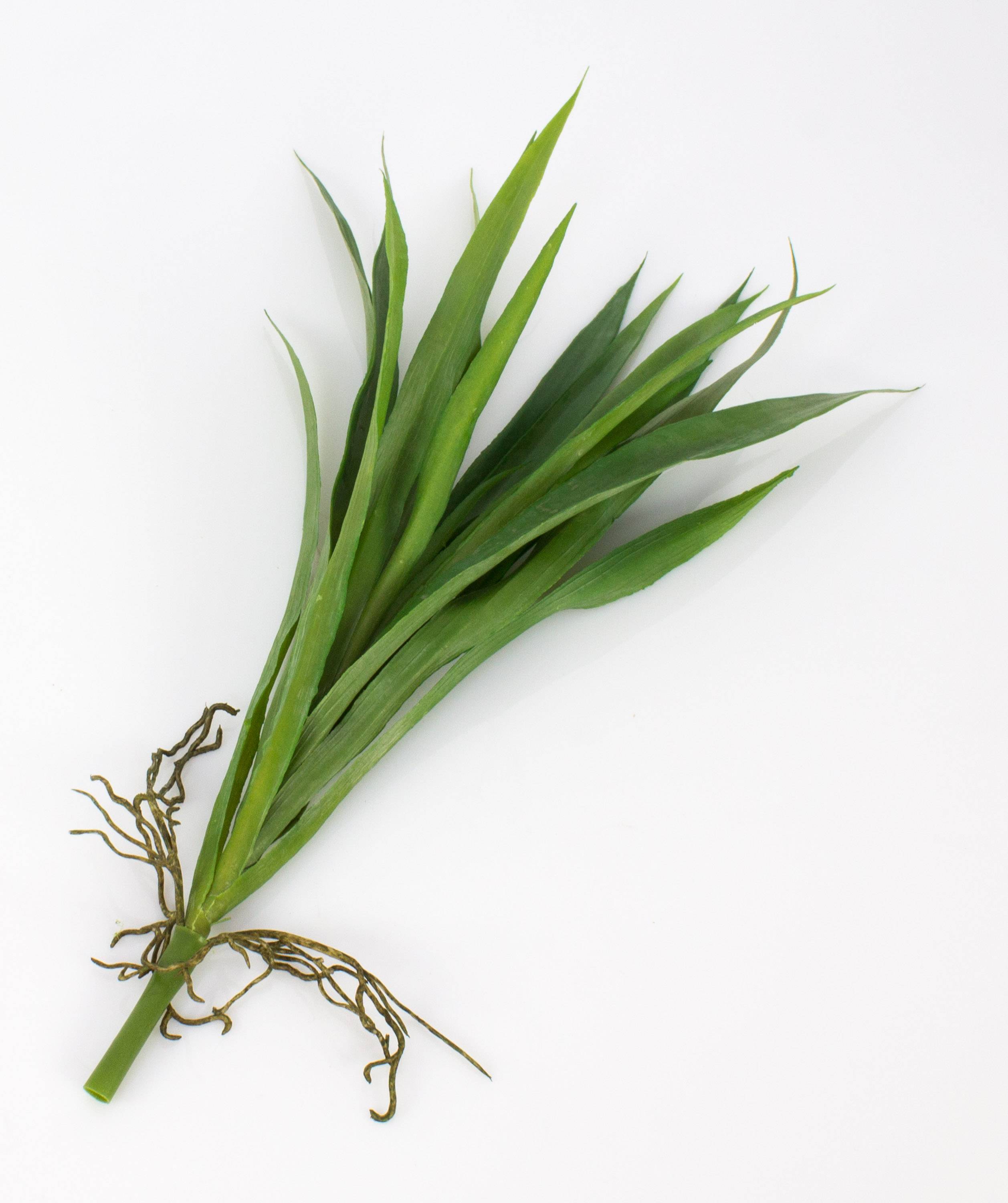 Feuilles de lys artificielles de couleur verte sur piquet avec racines aériennes. L'ensemble de la tige est haute d'env. 40 cm.