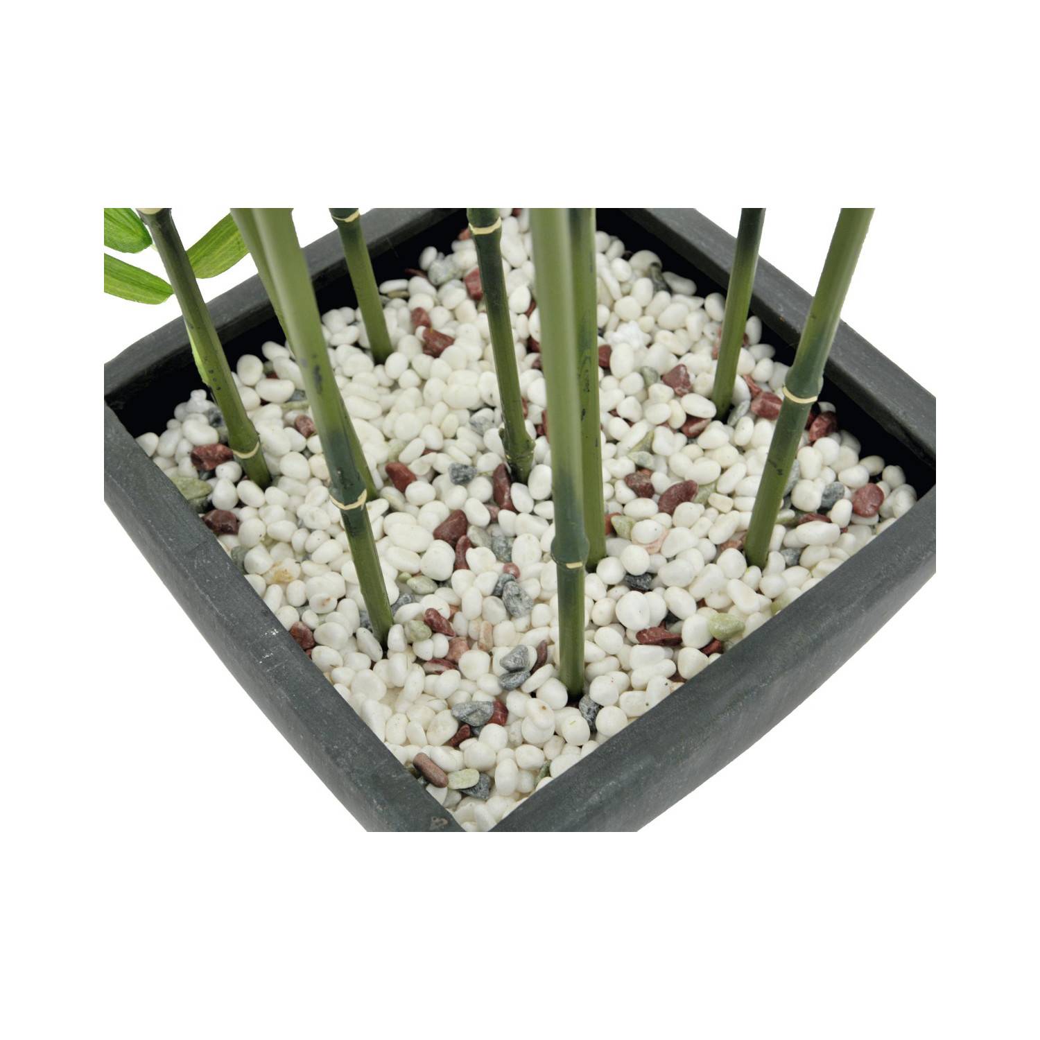 Bambou artificiel pourvu de troncs artificiels sombres dans une belle coupe décorative noire. Ce bambou est composé de feuilles vert clair et foncé et mesure au total environ 120 cm de hauteur.