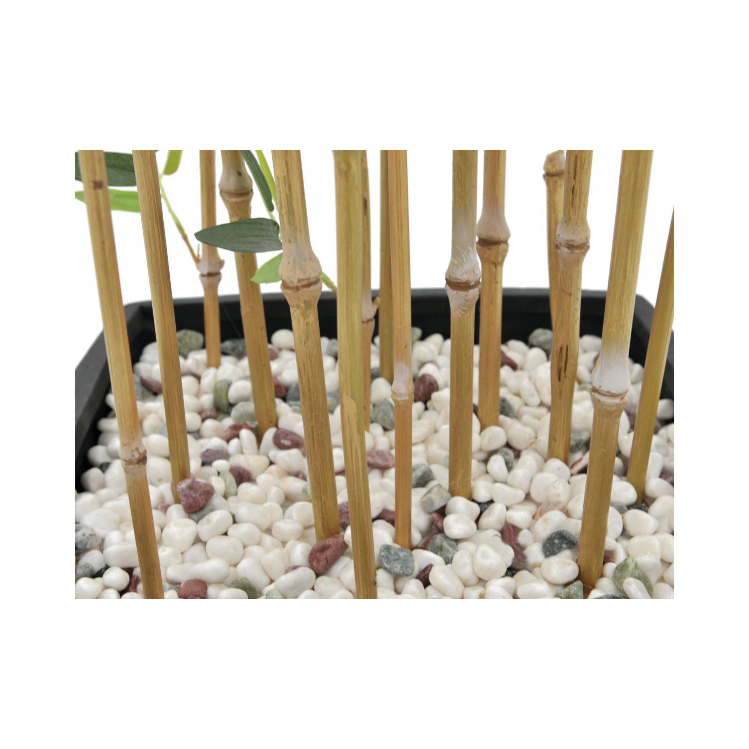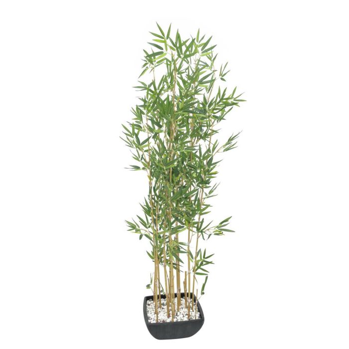 Bambou artificiel pourvu de troncs artificiels clairs dans une belle coupe décorative noire. Ce bambou est composé de feuilles vert clair et foncé et mesure au total environ 150 cm de hauteur.