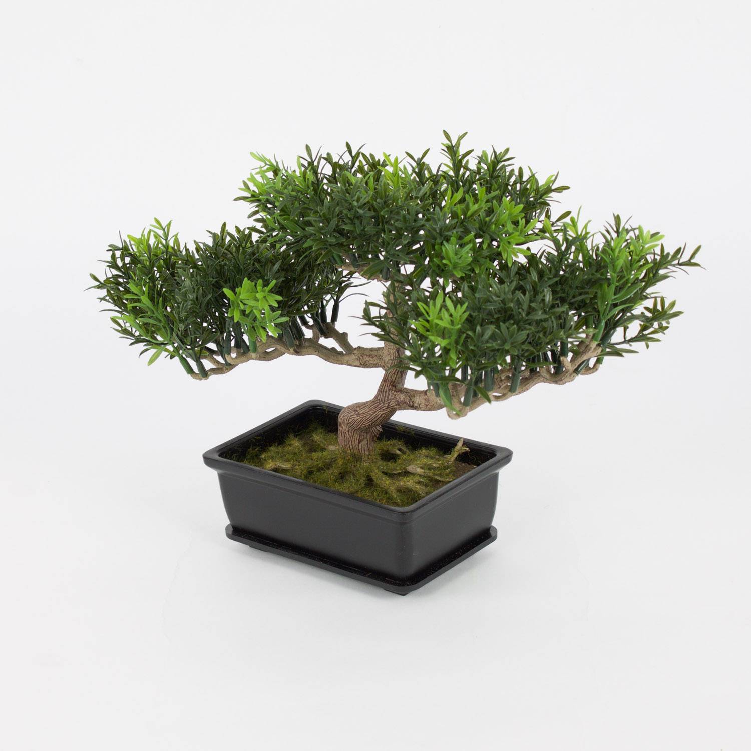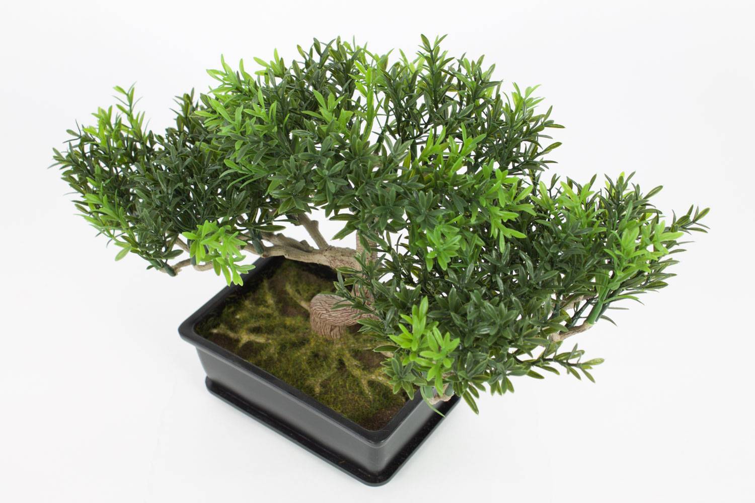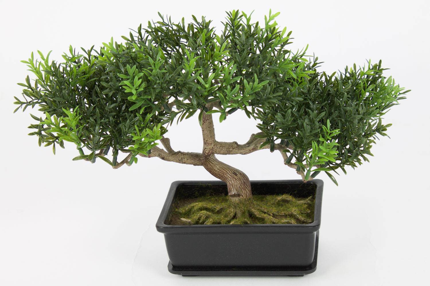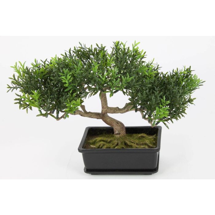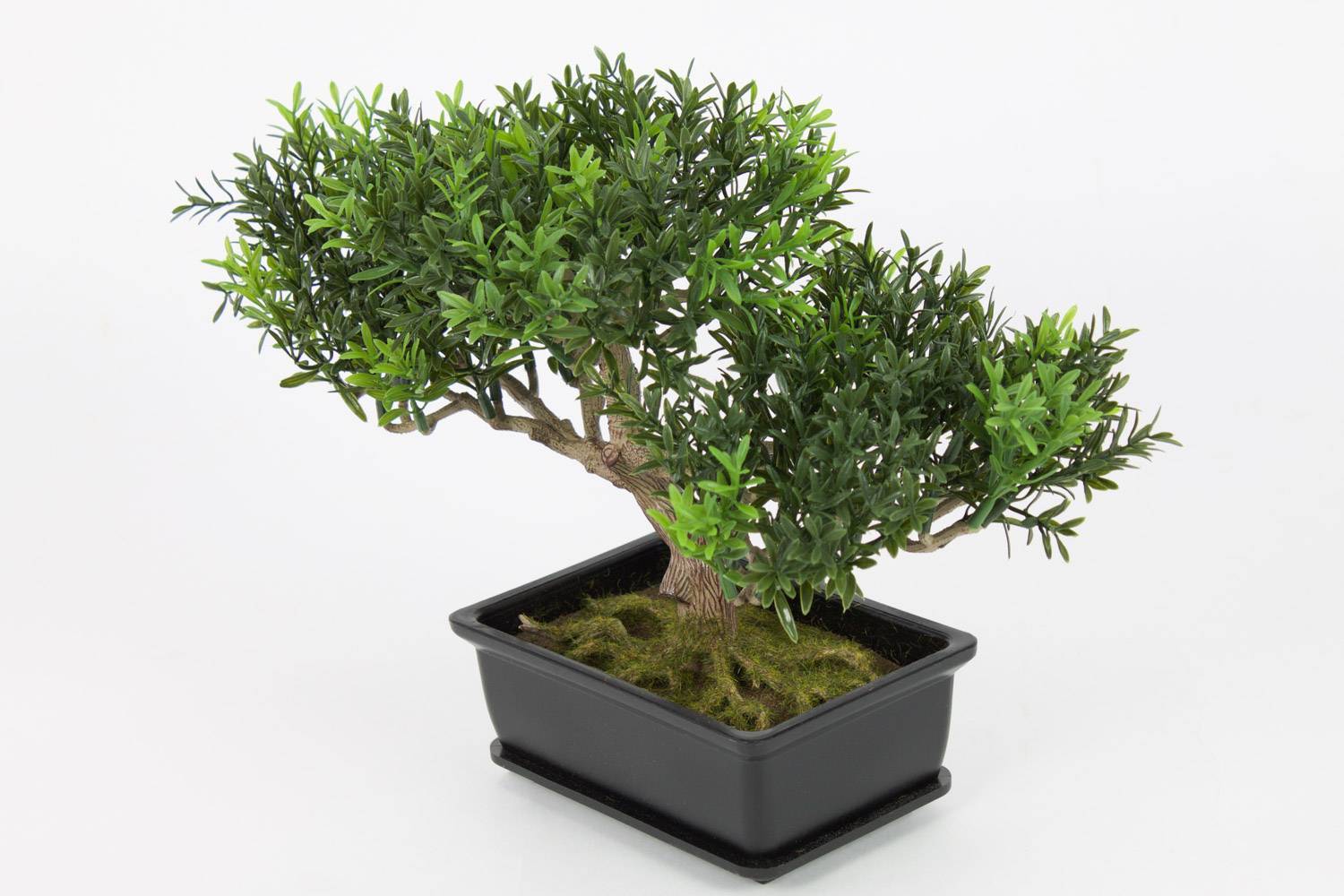 Petit bonsaï artificiel pourvu d’une centaine de rameaux. Il mesure environ 25 cm et est livré dans un pot à bonsaï noir.