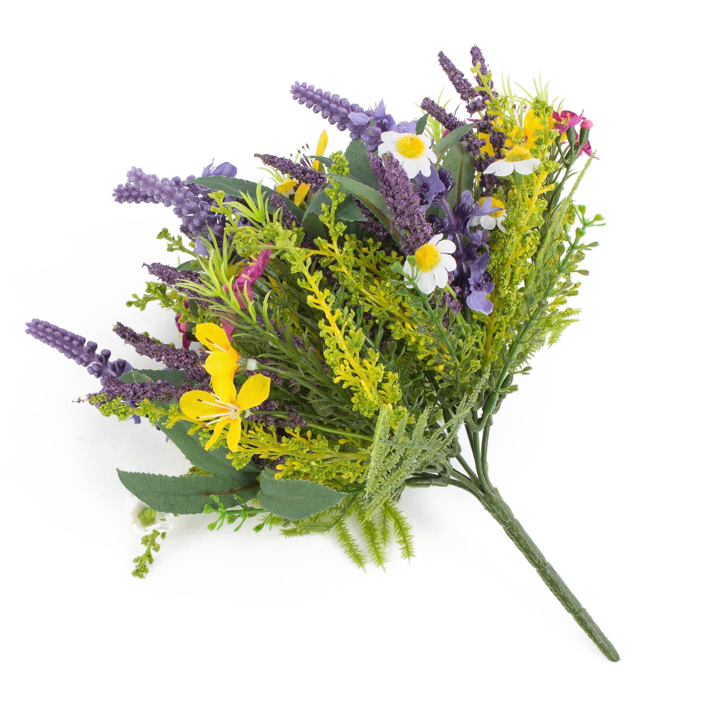 Ce bouquet printanier multicolore constitué de fleurs artificielles présente un diamètre extérieur d'environ 20 cm. Le bouquet coloré avec les couleurs jaune, lilas et blanc attirera tous les regards sur votre table, buffet ou étagère, etc.