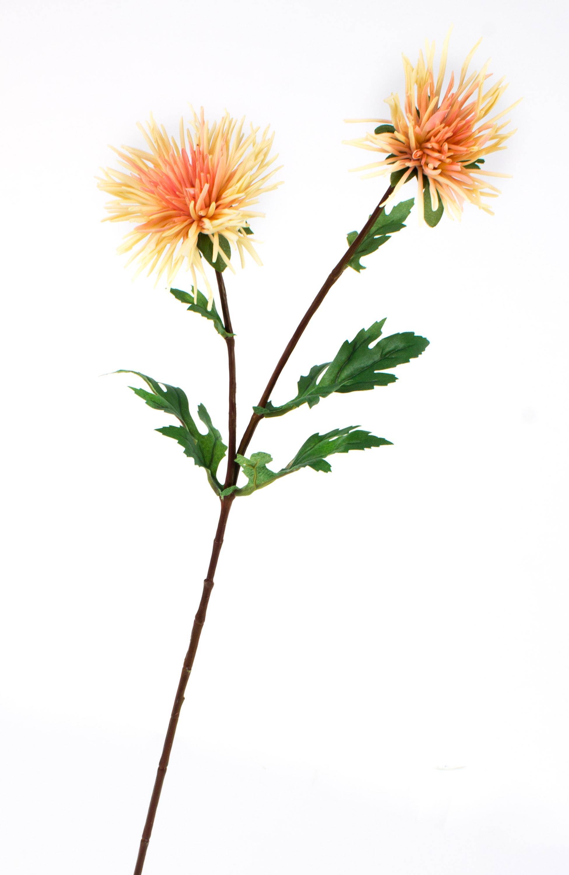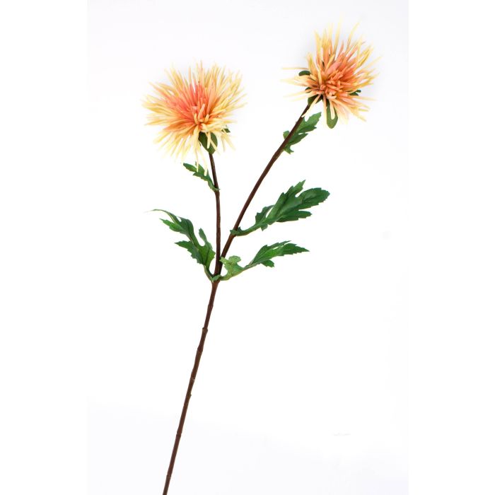 Chrysanthème artificielle avec 2 fleurs de couleur rose abricot, longueur de 70cm environ.