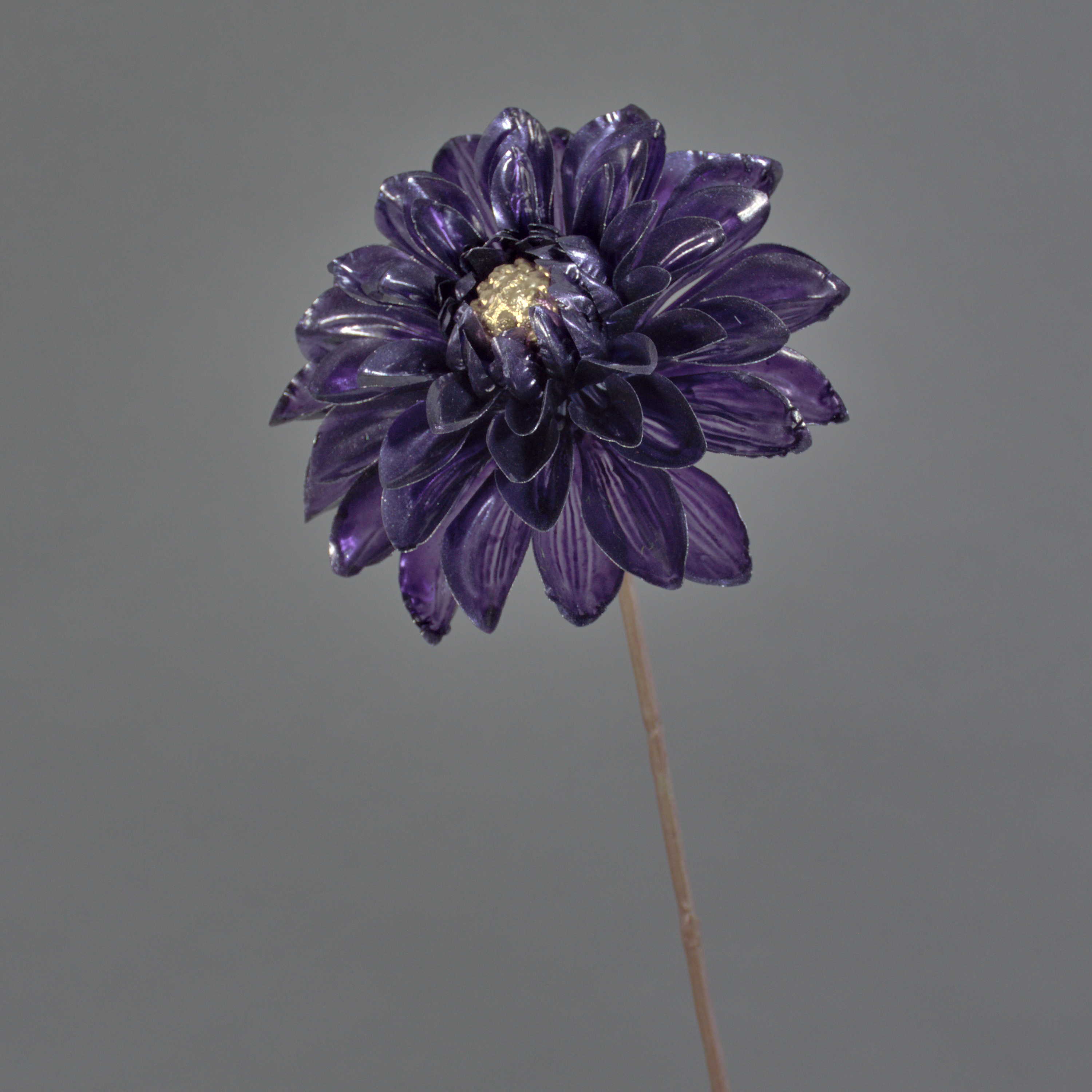 Faux dahlia LEOLANI, lilas foncé-électrum brillant, 60cm