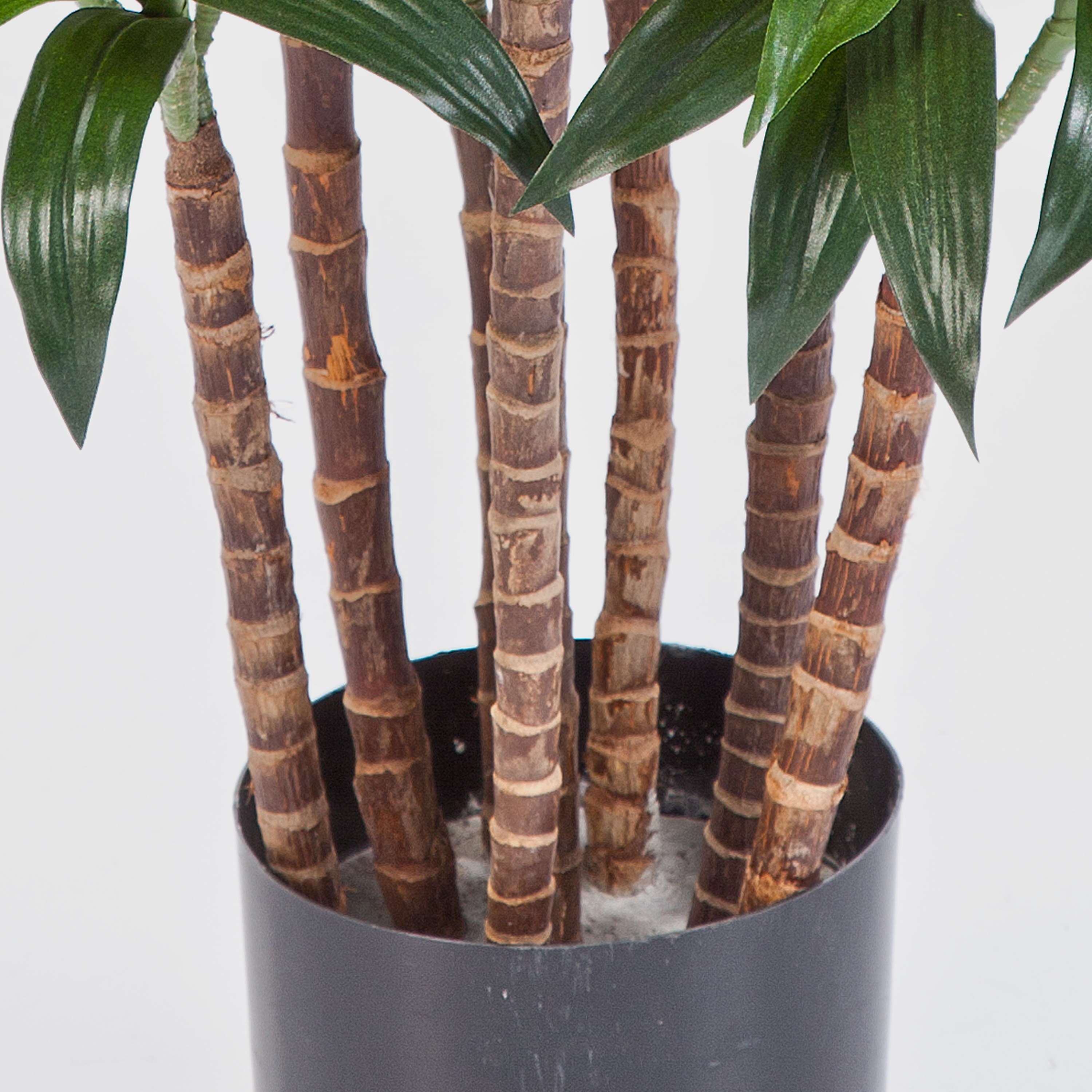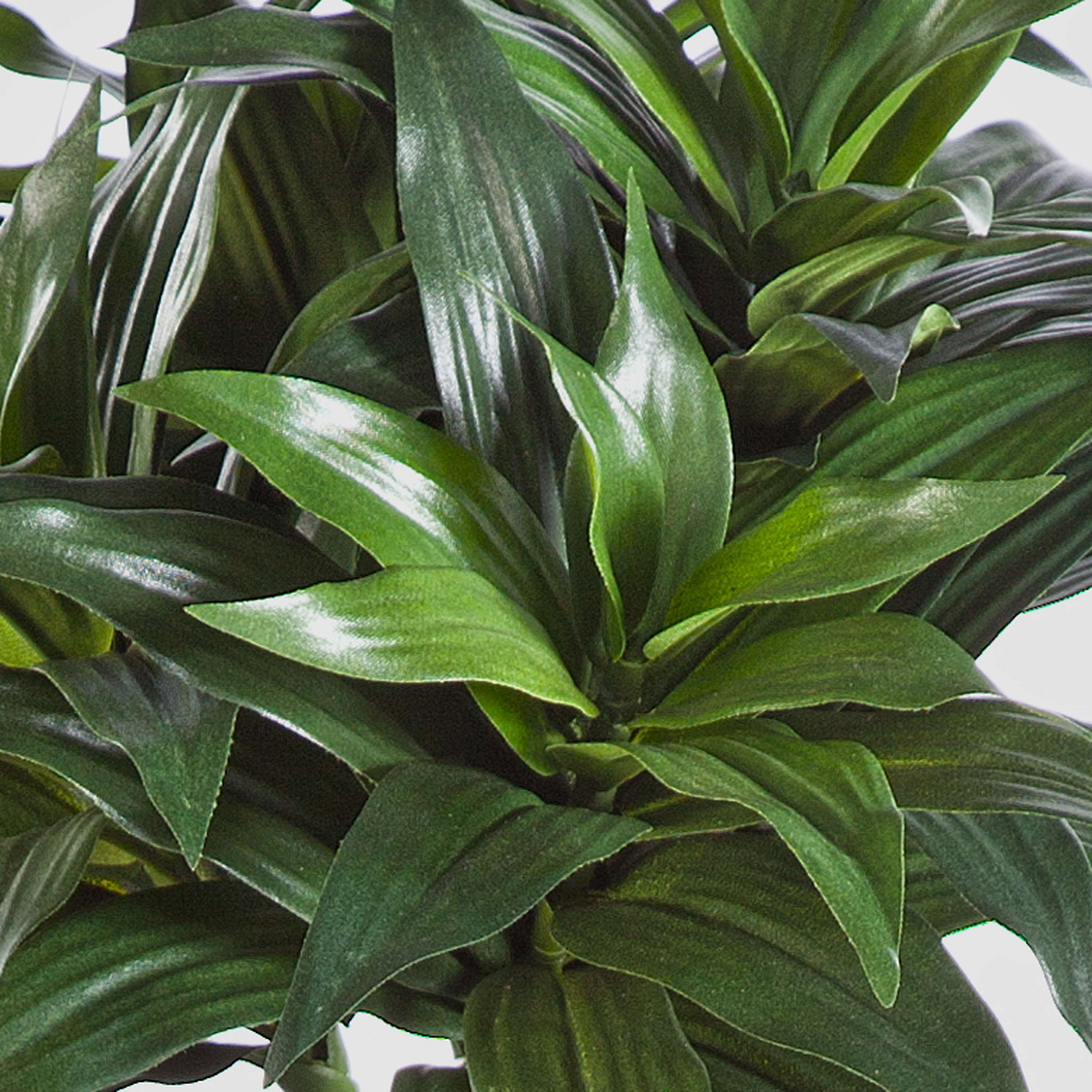 Très beau dragonnier (Dracaena) "Compact" artificiel constitué de nombreuses ramifications et de 580 feuilles vertes. L’arbre artificiel est livré en pot et mesure au total environ 120 cm.