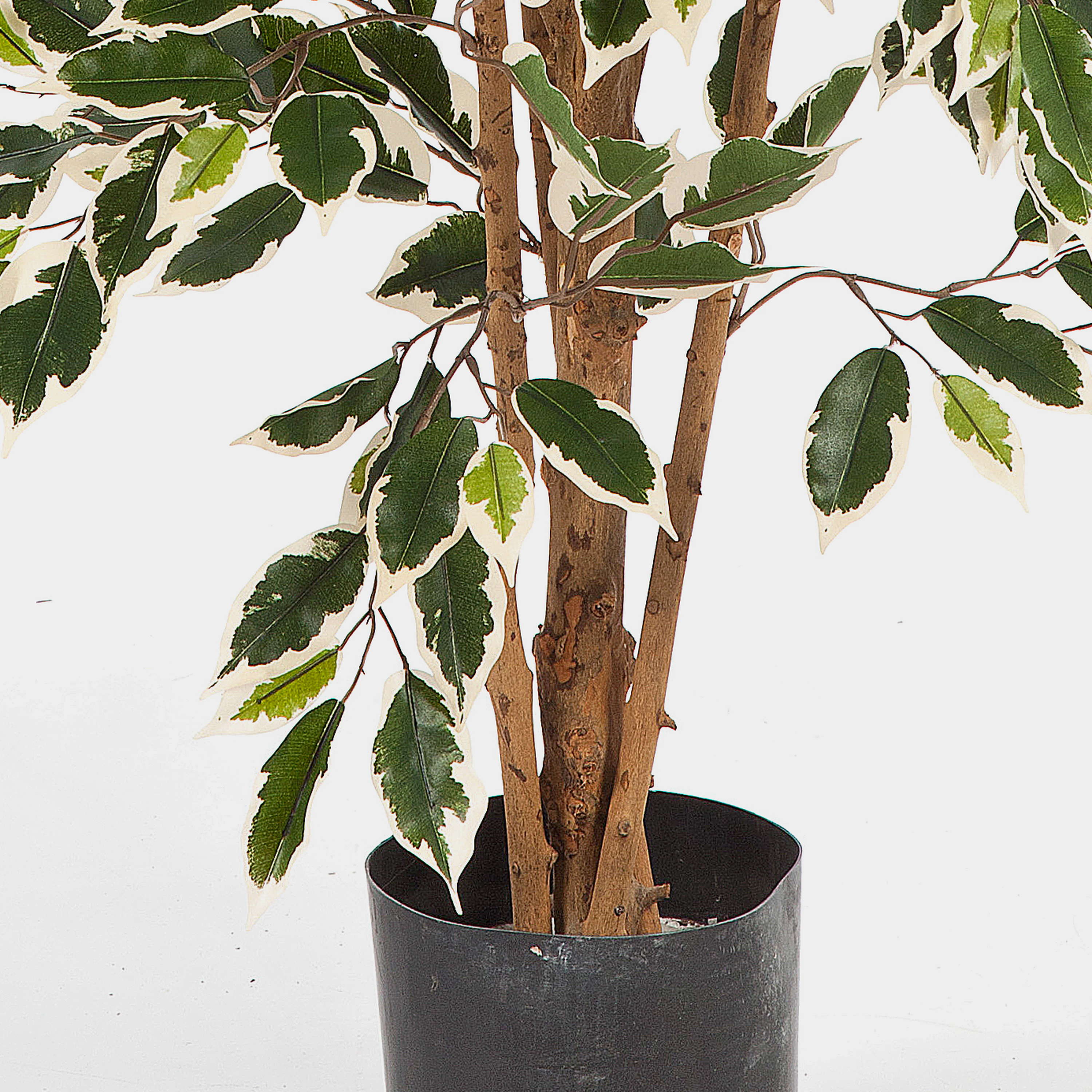 Faux ficus benjamina AVELLINO, vrais troncs, vert-blanc, 150cm