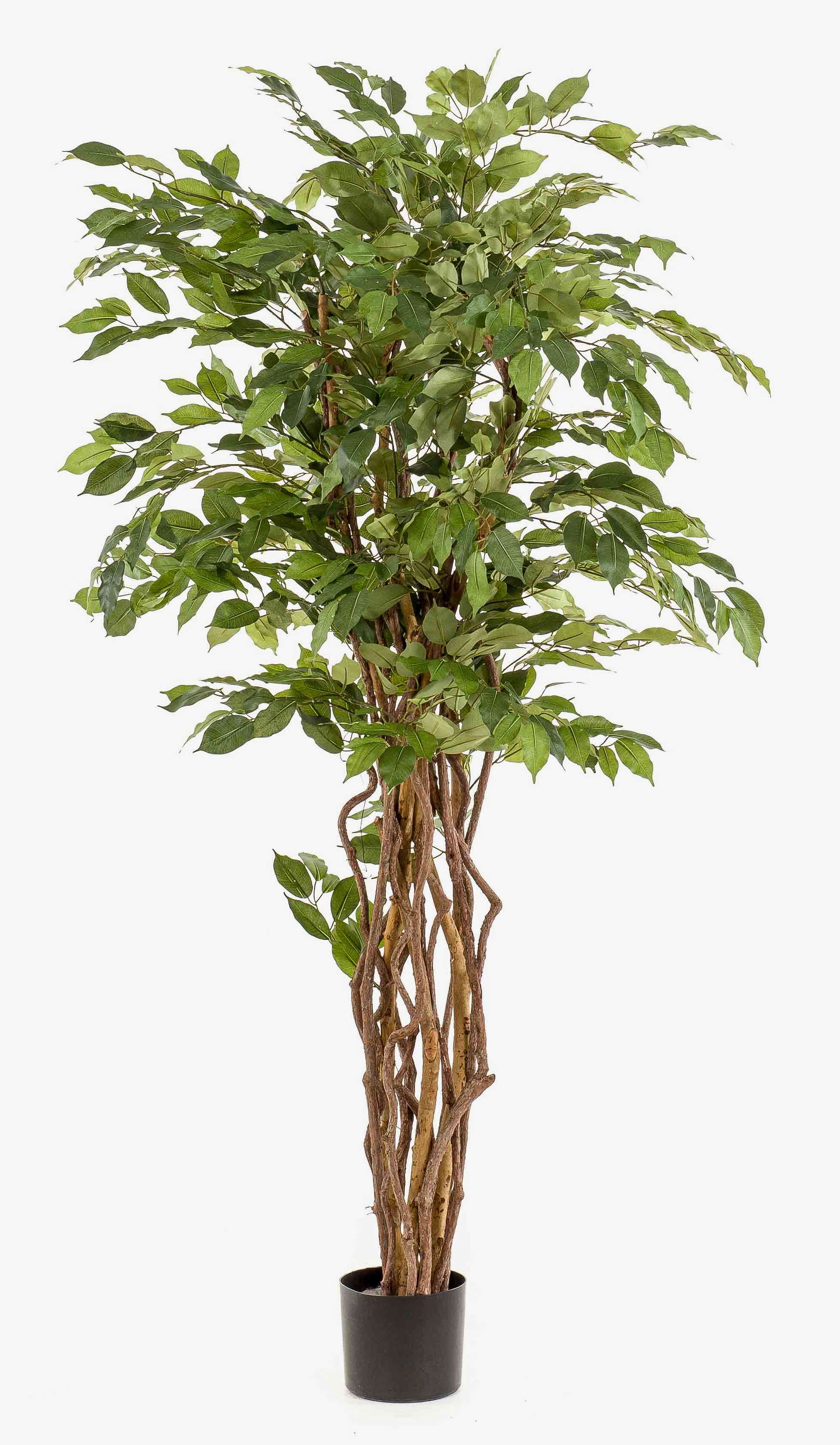 Faux Ficus Benjamina CARLOH, véritables troncs, vert, 170cm
