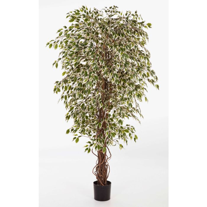 Faux ficus benjamina DAKU, troncs naturels, vert-blanc, 90cm
