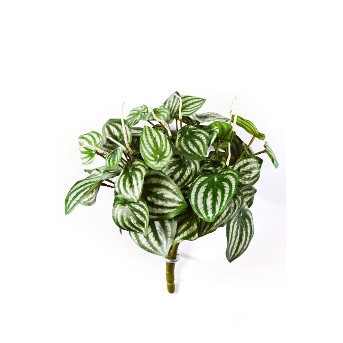 Plante très décorative, ce fittonia artificiel sur piquet est pourvu de feuilles vertes aux nervures blanches et mesure au total environ 30 cm de haut.