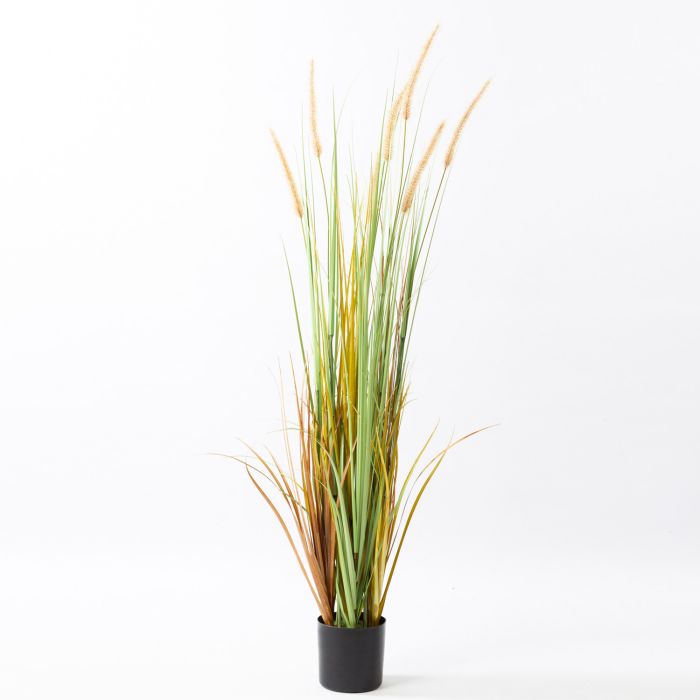 Faux Pennisetum LYONEL avec panicules, pot décoratif, vert-brun, 120cm