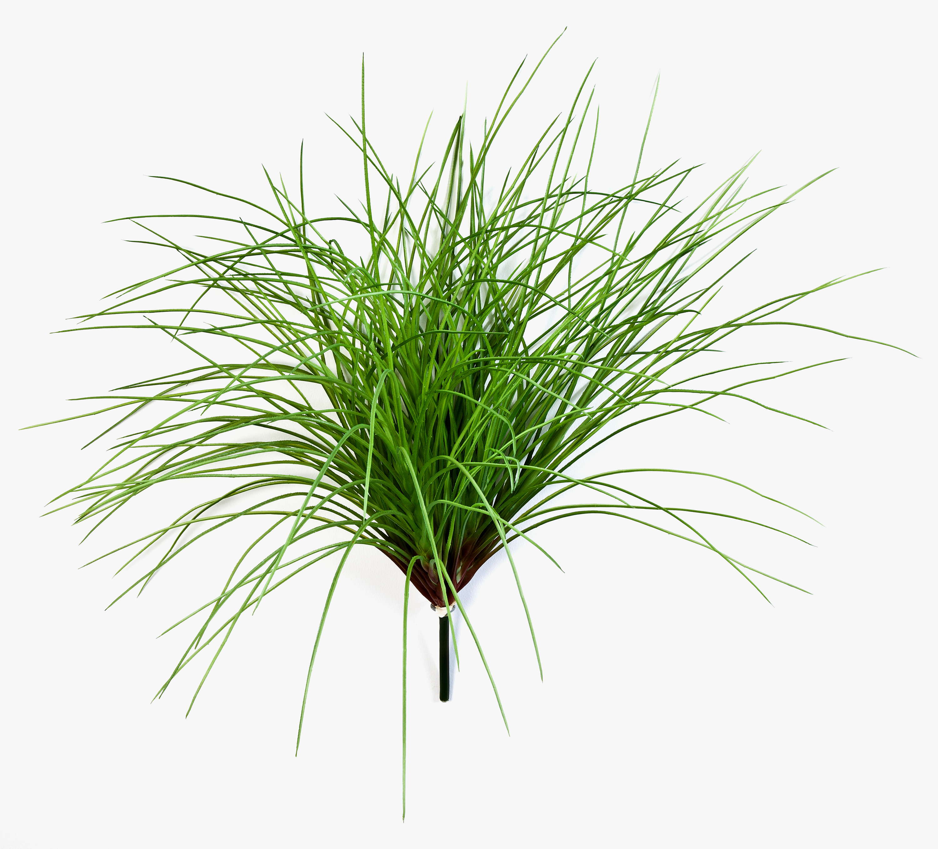 - Composée de nombreux brins d'herbe verts retombants de différentes tailles