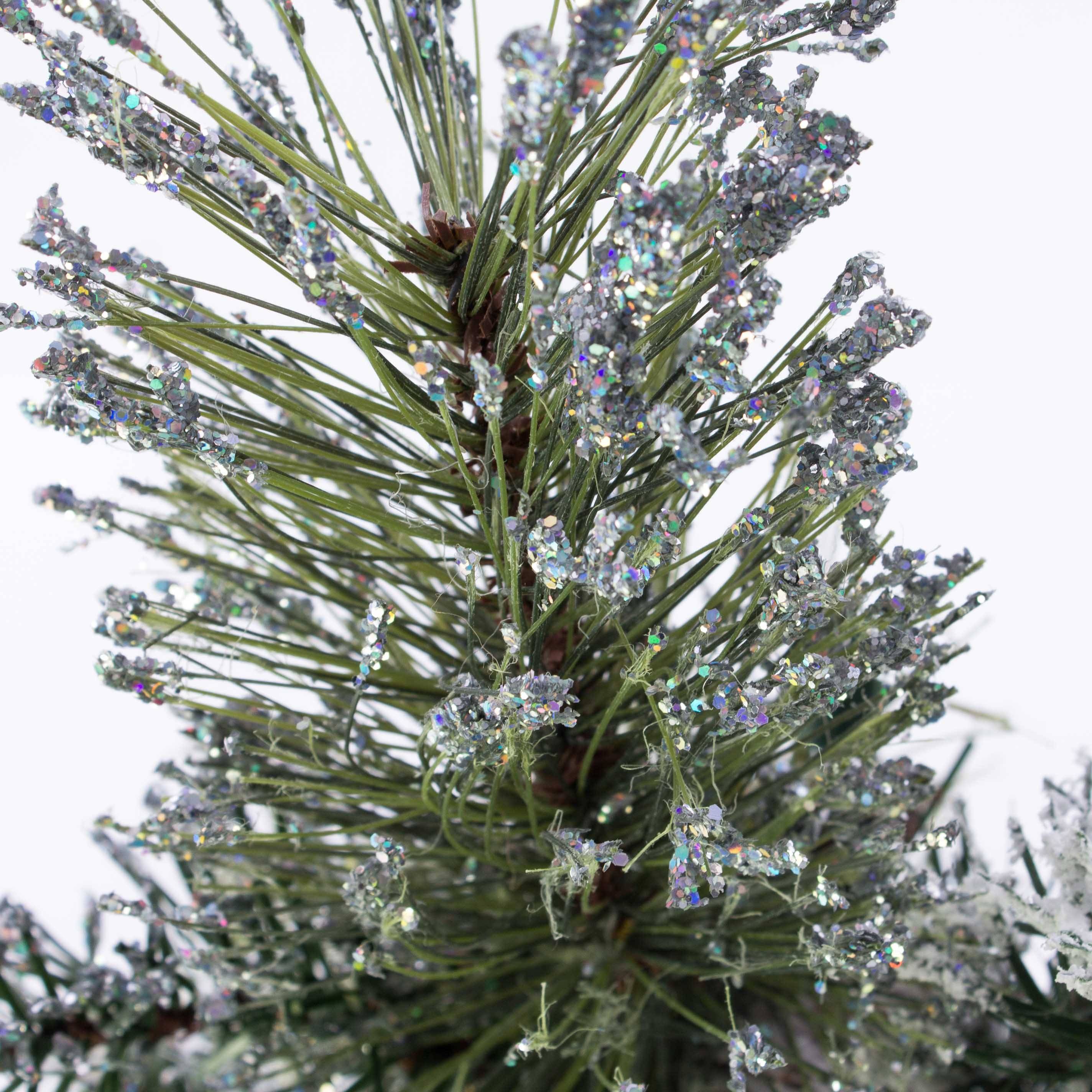 - Pourvu d'env. 110 branches artificielles avec de nombreuses pommes de pin et de paillettes, solidement fixées sur le tronc