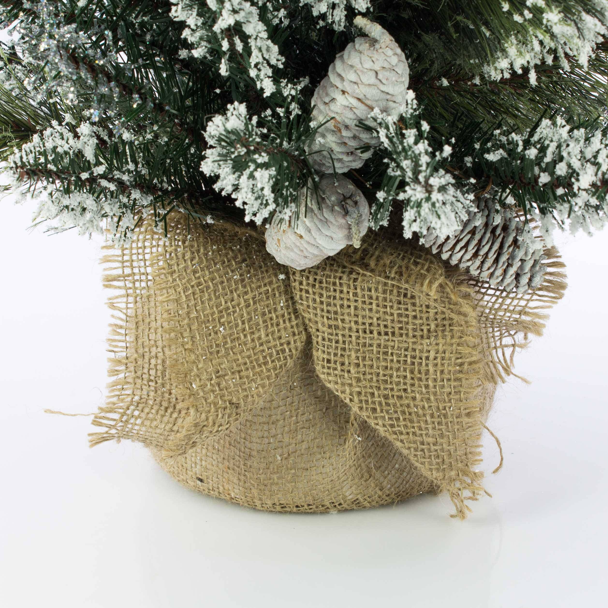 Faux sapin de Noël RIGA, pommes de pin, sac de jute, blanc, 90cm, Ø50cm