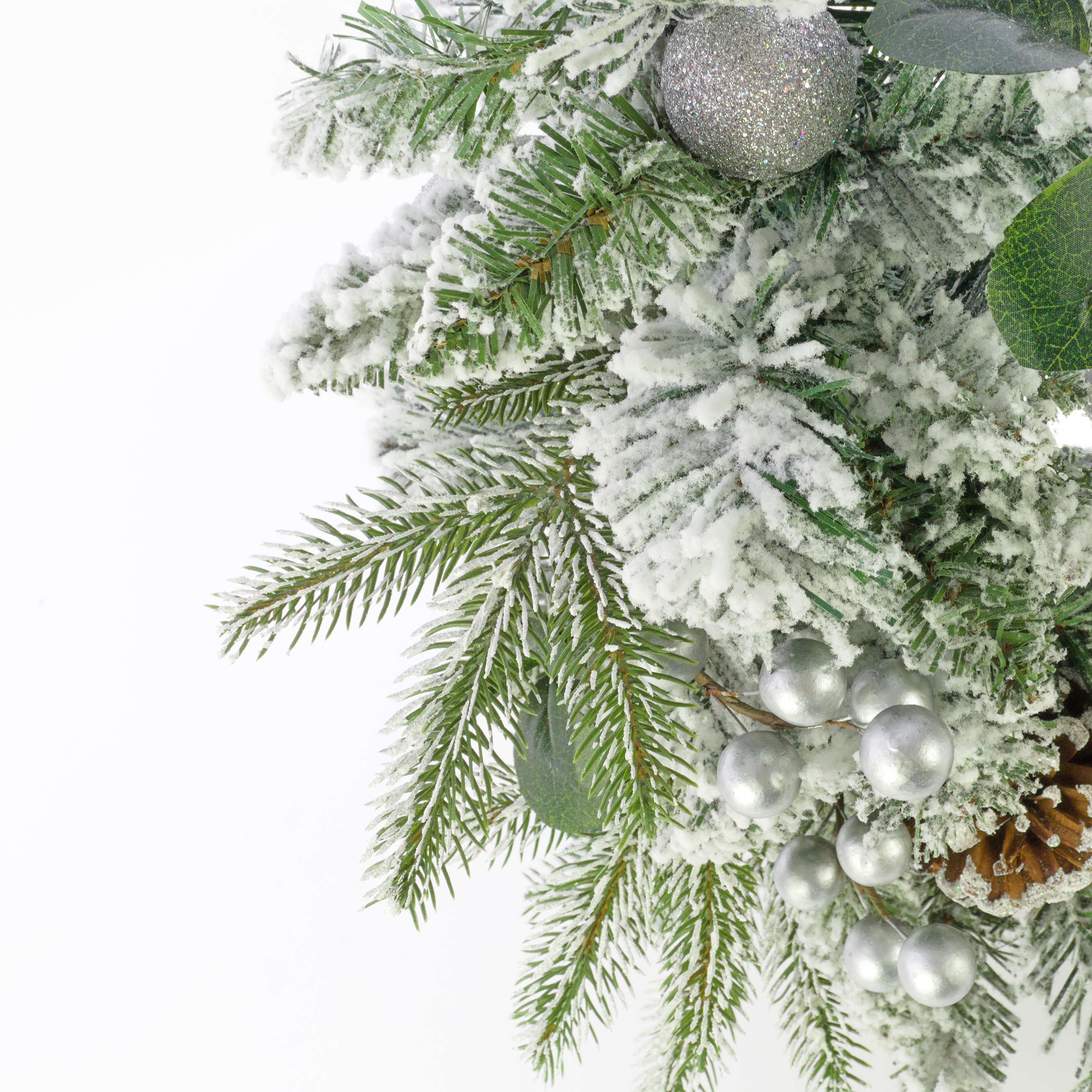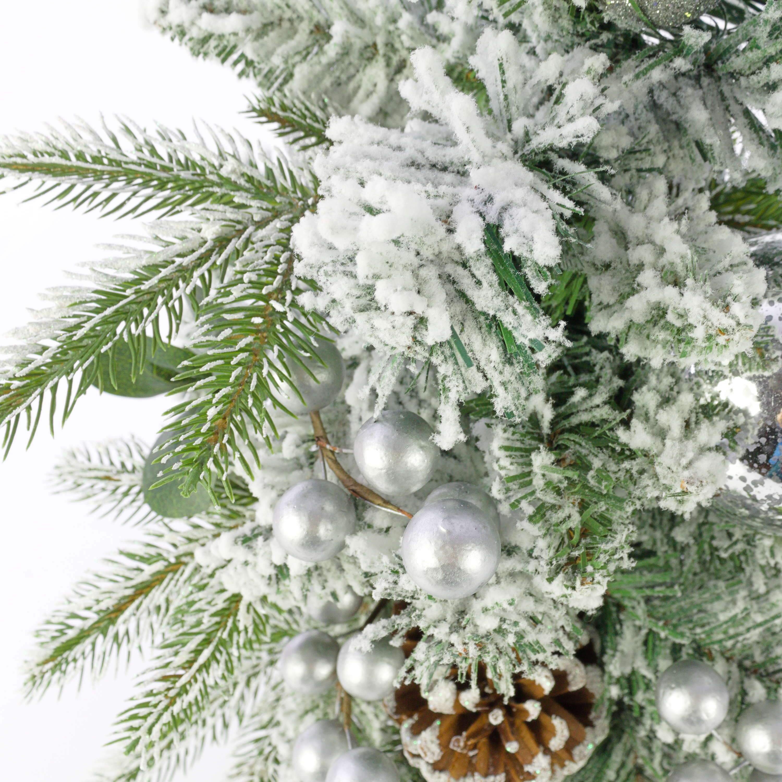 - Pourvu d'env. 41 branches de sapin et orné de neige artificielle, de pommes de pin et de boules de Noël, les aiguilles en matière textile sont solidement fixées sur le tronc