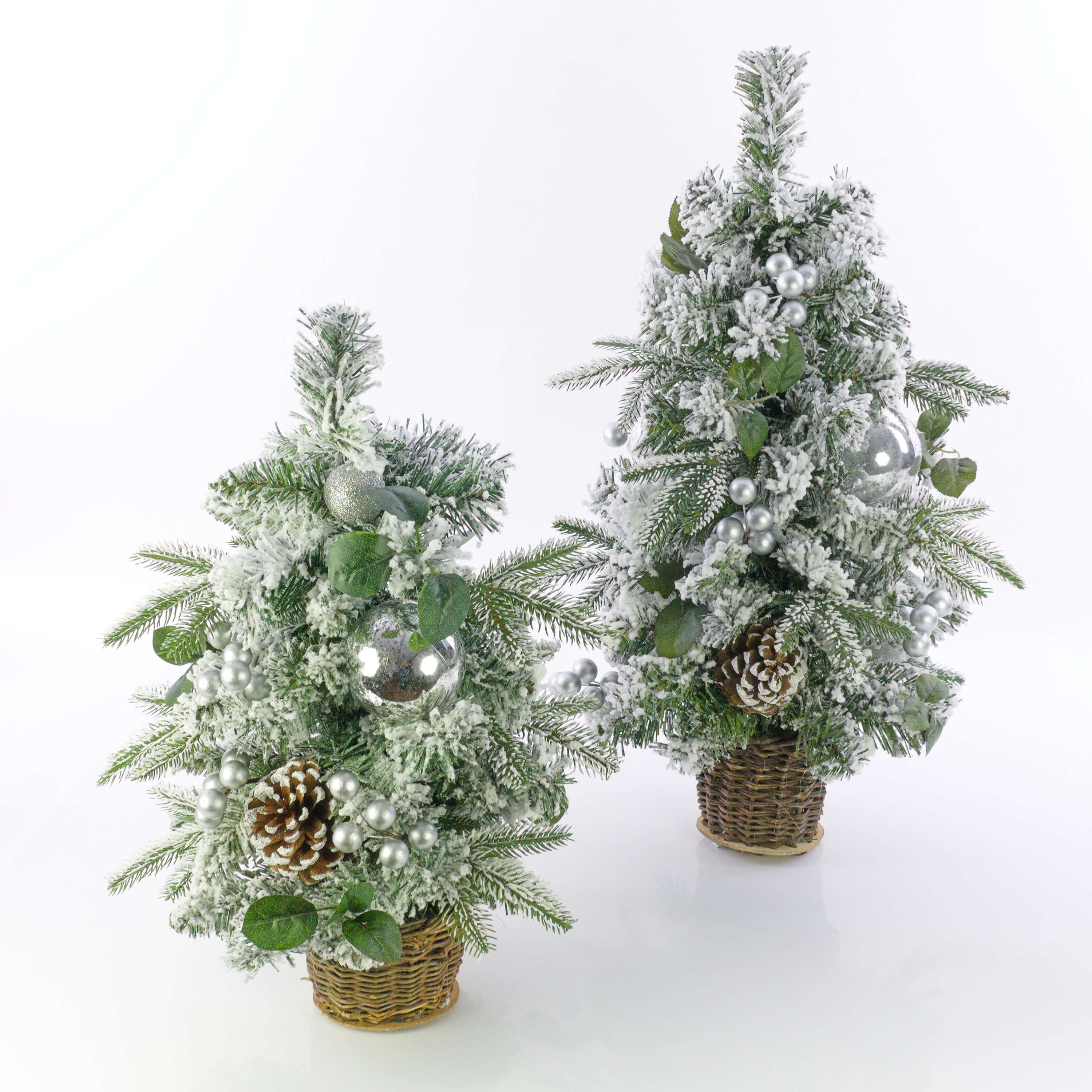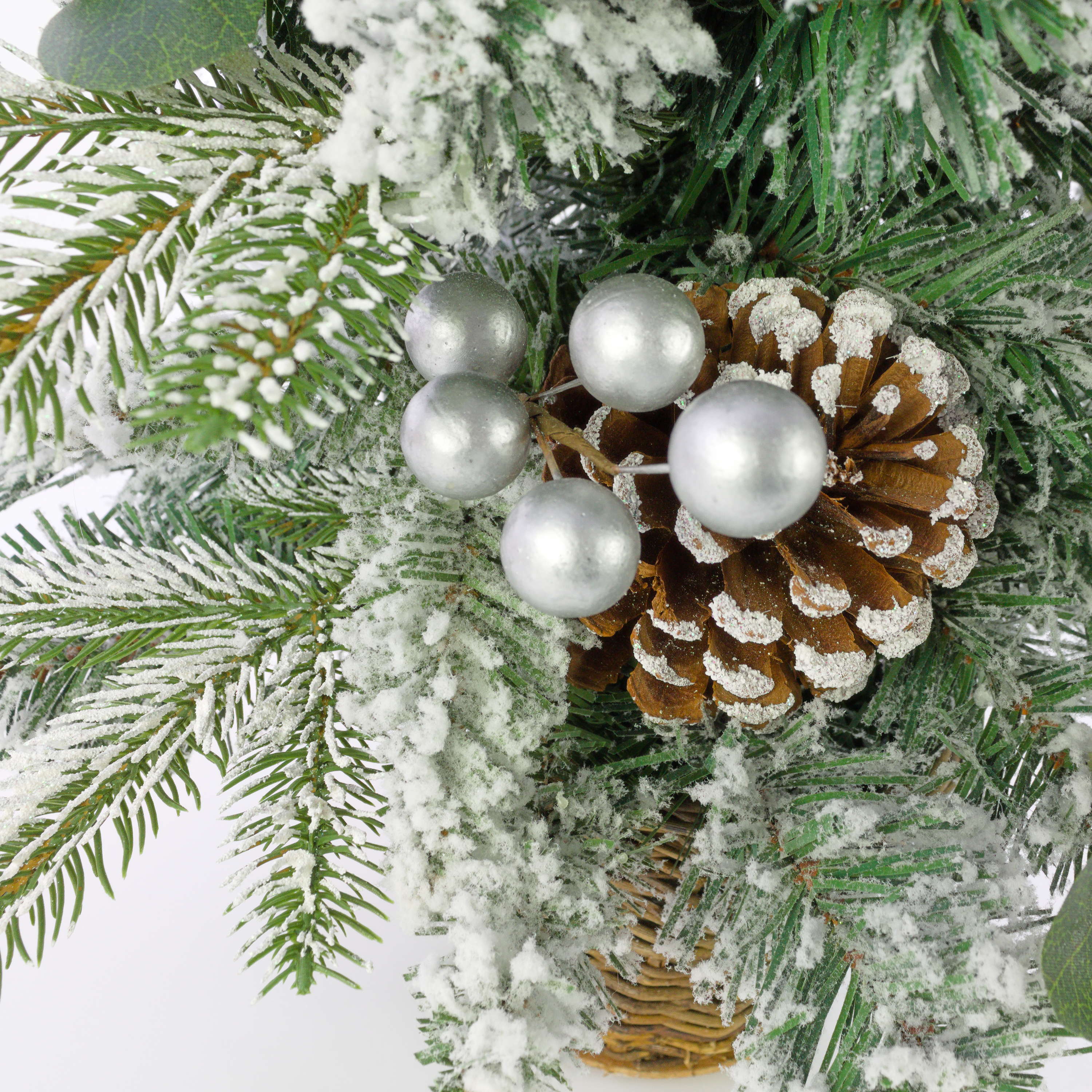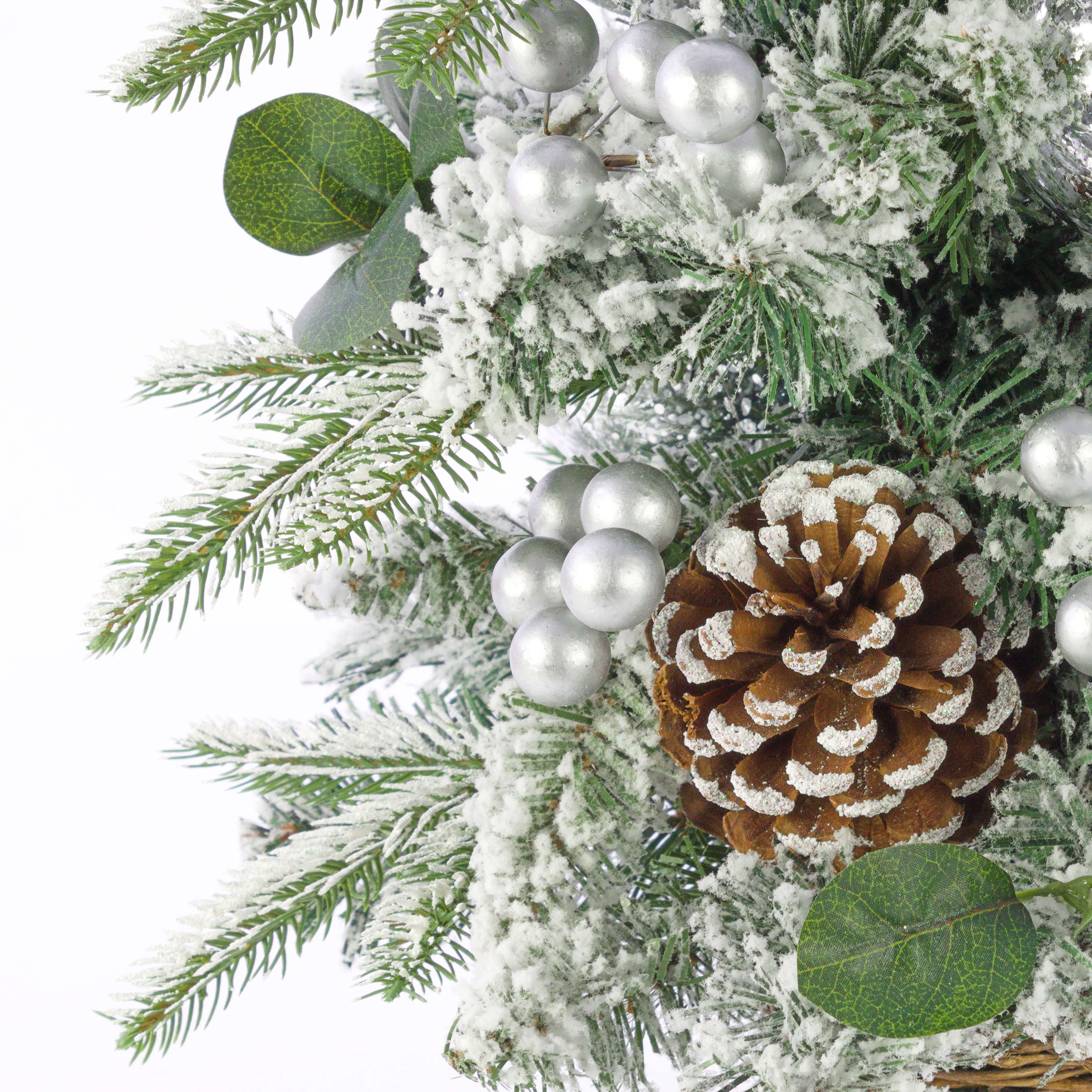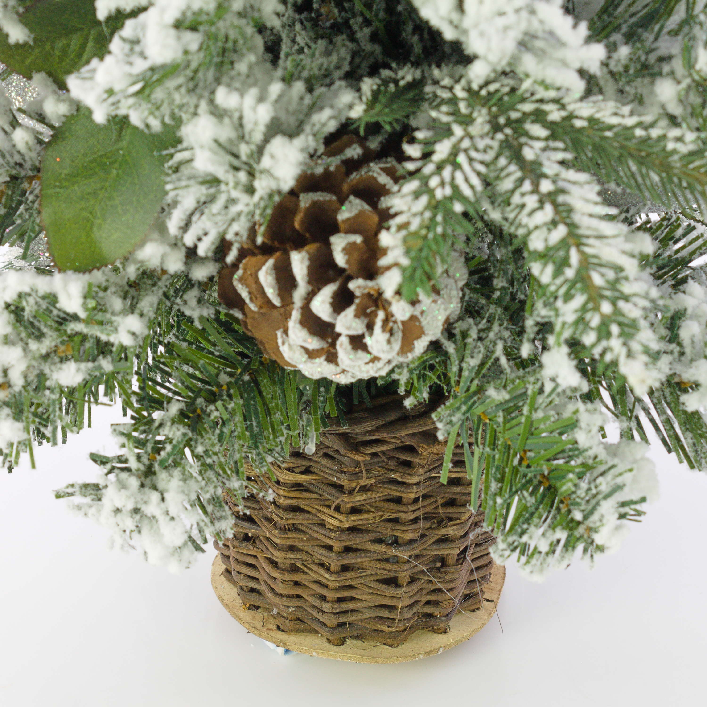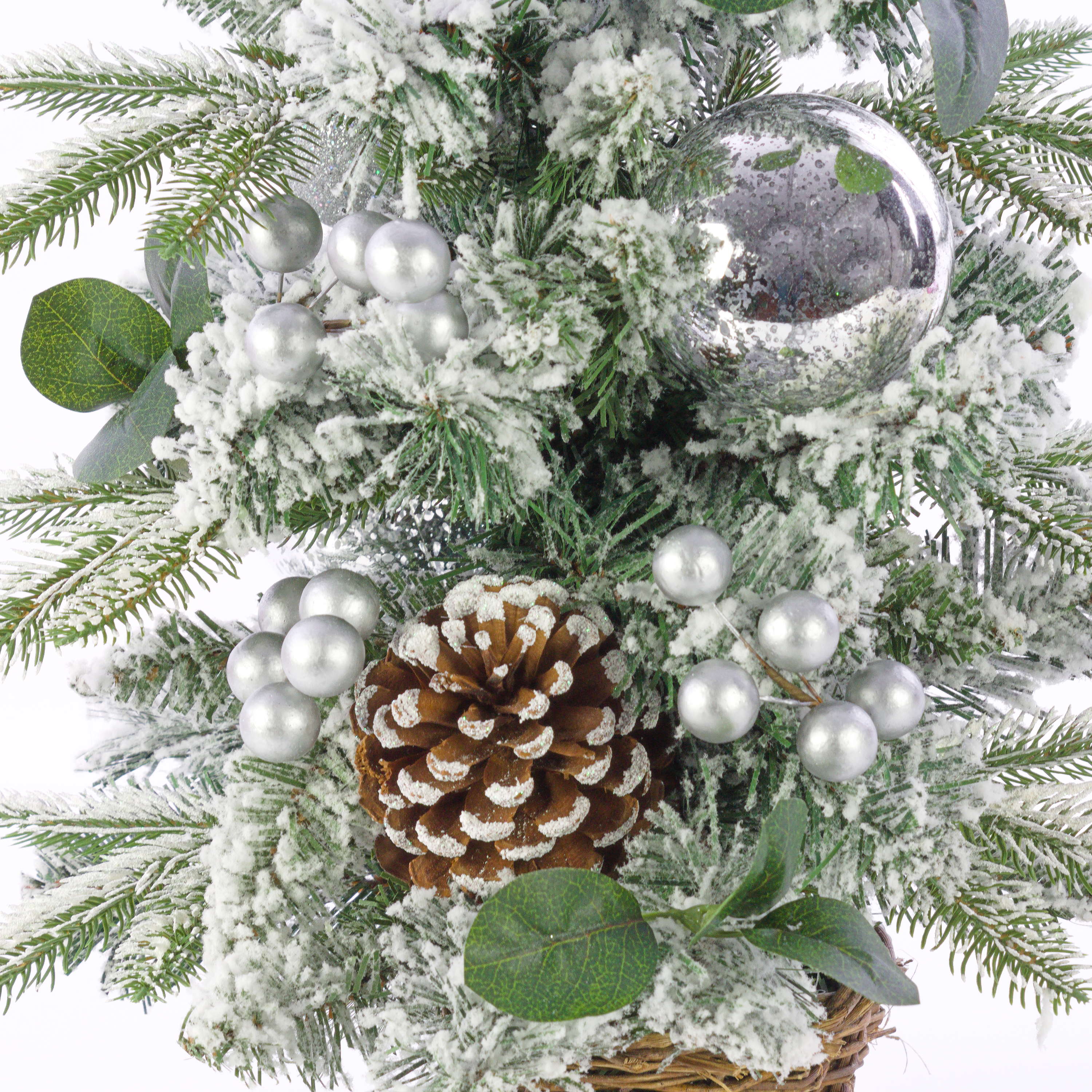 Faux sapin HELSINKI, pommes de pin, panier en osier, blanc, 50cm, Ø30cm